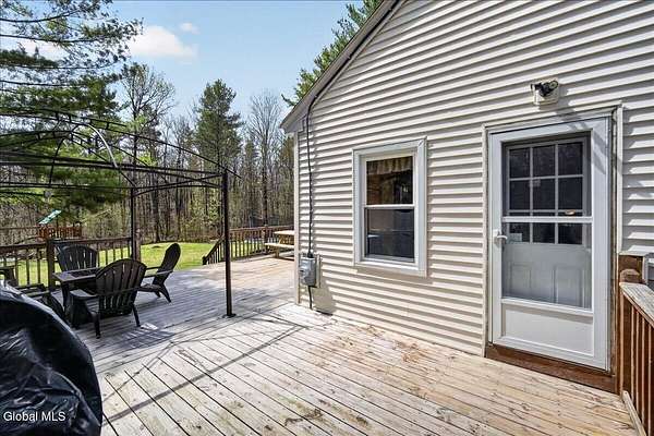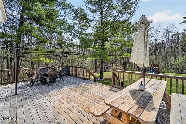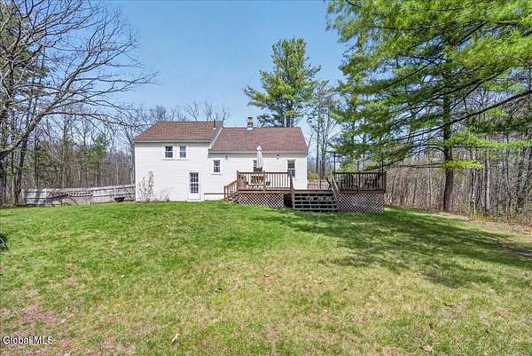 This is the kind of home that stands out the moment you arrive. Set on just over 2 private acres, this 3-bedroom, 1.5-bath Cape offers the space, setting, and updates today's buyers are searching for. The kitchen has been beautifully updated and serves as the heart of the home. It overlooks the backyard, offering abundant hickory cabinetry, and is anchored by a center island, topped with granite- perfect for gathering. Just off the kitchen, step out to the pressure-treated deck and take in the peaceful surroundings ideal for morning coffee or unwinding at the end of the day. Inside, oak hardwood floors add warmth and character, complemented by a bright full bath and a convenient first-floor half bath. The living space flows naturally into a spacious living & family room with a glass door to the backyard, creating an easy, functional layout for both everyday living and entertaining. Upstairs, the primary bedroom offers an added opportunity with direct access to a walk-up attic, providing clear potential for future expansion, a home office, or a private retreat. Homes offering this combination of land, updates, and potential at this price point are few and far between. Come see it today!