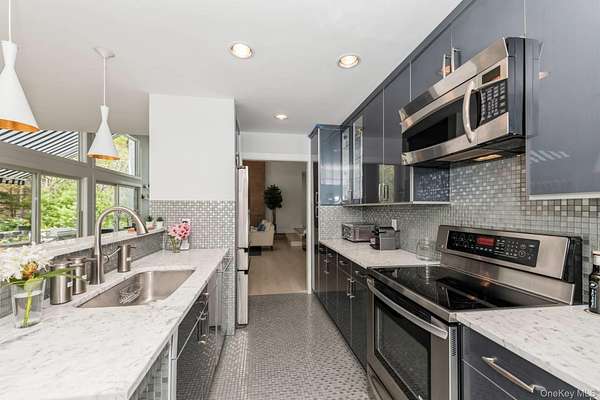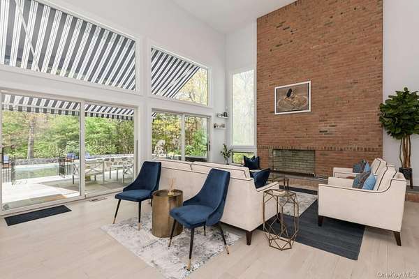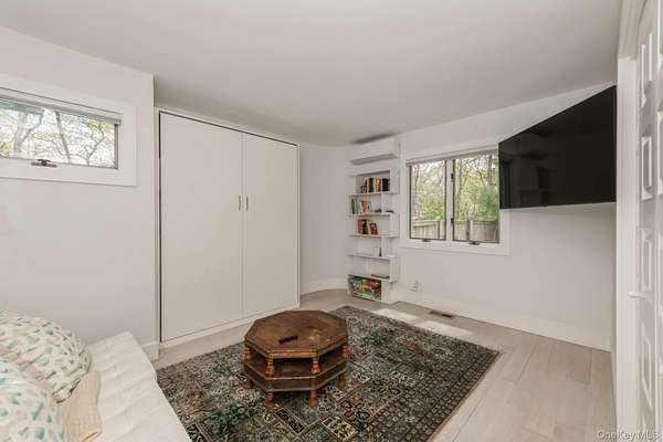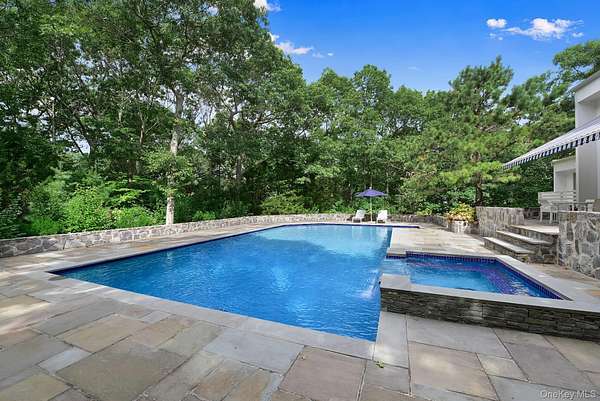 Est $11,694/moThis pristine contemporary gated home, designed by Myron Shulman, is one of a kind. The natural light filled entry level has double height ceilings in the great room with a seamless flow for indoor to outdoor entertaining. The first-floor primary with ensuite has a private deck that overlooks the mature landscape of the backyard. Also, on the first floor is a bedroom/office that has a full bath to service the first floor and the 25x50 heated salt water gunite pool. The second level has two bedrooms, one with a private balcony, that share a bathroom. The lower level is fished with additional living space and a gym. Just minutes to Sammy's Beach and Three Mile Harbor, this home is a perfect get away.