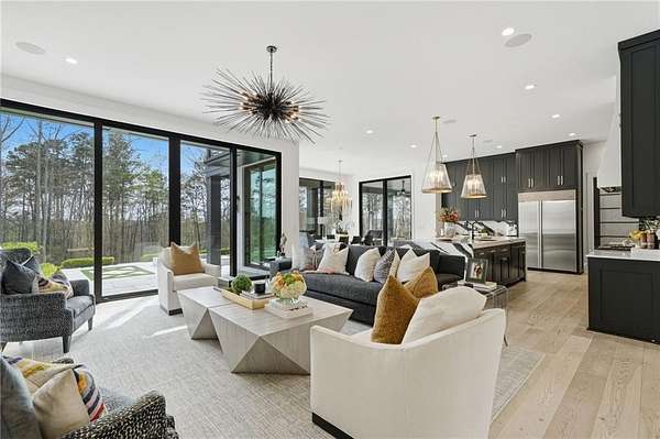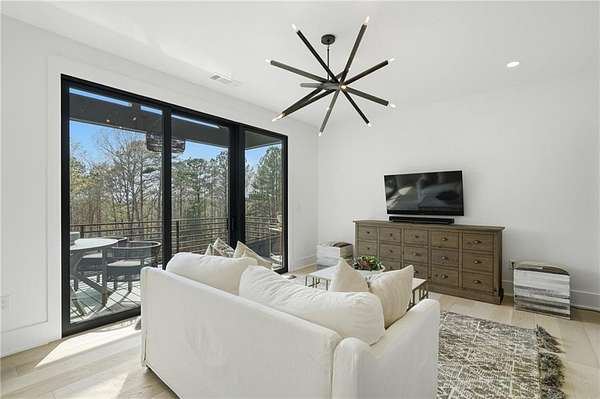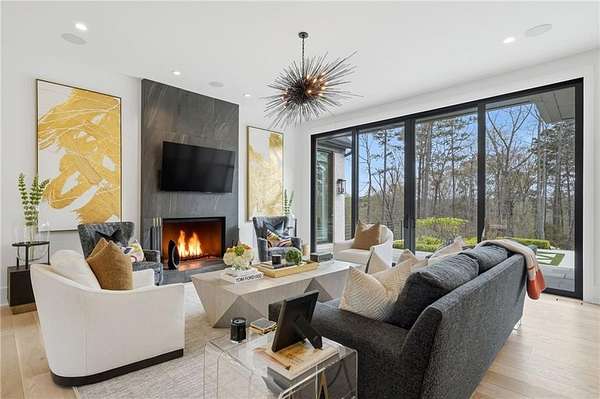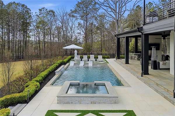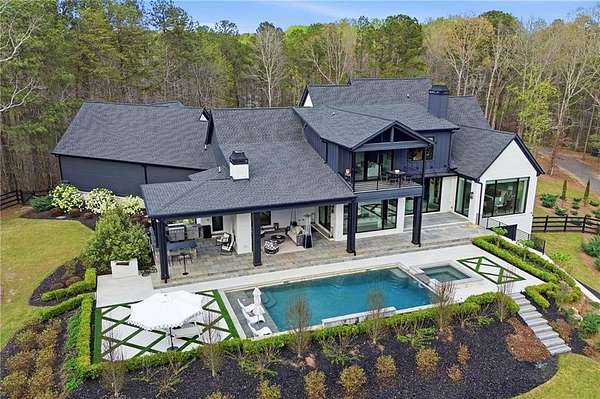 Welcome to an extraordinary private estate in Canton, Georgia, where modern design, resort-style living, and over 20 acres of pristine land converge to create a truly one-of-a-kind offering. Ideally located just minutes from The Mill on Etowah and downtown Canton-yet completely secluded-this $3.5M+ estate delivers an unmatched level of privacy, craftsmanship, and lifestyle. Built in 2021, the residence spans approximately 4,802 square feet with 4 bedrooms, 4 full baths, and 2 half baths. Every inch of this home is fully custom-thoughtfully designed and meticulously curated, from architectural elements to the finest hardware selections, blending ultra-luxury finishes with a clean, modern edge. At the heart of the home, a state-of-the-art chef's kitchen is outfitted with premium Wolf and Sub-Zero appliances, complemented by custom cabinetry and integrated features that elevate both form and function. What truly sets this home apart is the intentional design centered around light and connection to the outdoors. Expansive, floor-to-ceiling Pella windows and oversized glass sliding doors frame the landscape and capture breathtaking sunset views. Natural light pours into every space, blurring the line between indoor and outdoor living. Designed for both comfort and entertaining, the home features three fireplaces-two indoors and a striking double-sided outdoor fireplace-plus a stunning second-floor veranda offering sweeping views. Custom cabinetry is integrated throughout, extending from living spaces to built-ins and even in the three-car garage. Additional features include multiple laundry areas, designer lighting, and a fully integrated Control4 smart home system with lighting, audio, security, cameras, and motorized Lutron shades. A safe room, home gym, and expansive basement with a custom man cave offer flexibility, while unfinished spaces are already plumbed and wired for future expansion. Step outside to a private resort. The heated pool and spa with LED lighting are surrounded by cool-touch porcelain stone and artificial turf. A full outdoor chef's kitchen with smoker, grill, sink, and dual refrigerators anchors the space, along with a pool bath and large fenced-in backyard for added functionality. The 20.14-acre property also features a pond, trail system, cleared garden and firepit area, and multiple potential homesites-ideal for a future family compound. With no HOA, the possibilities are endless. Located less than one mile from Northside Hospital Cherokee and Canton Marketplace, and just minutes to Hickory Flat, this property offers the rare balance of convenience and privacy. As featured on American Dream TV, this is more than a home-it's a statement.