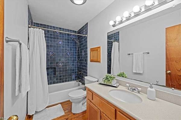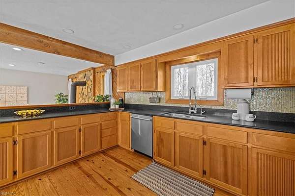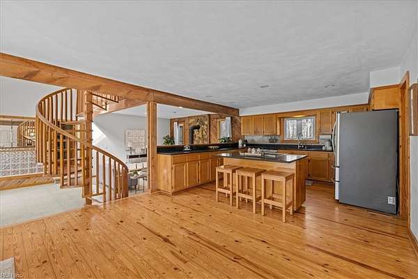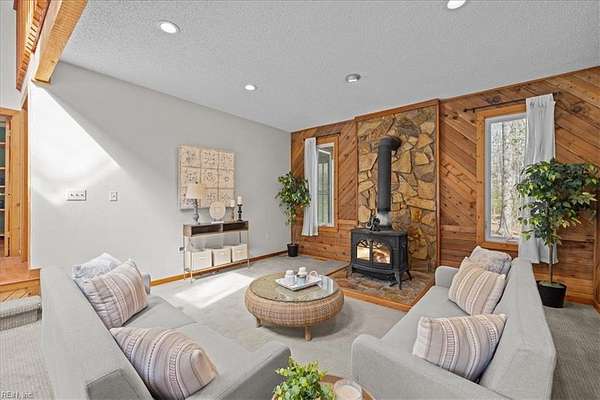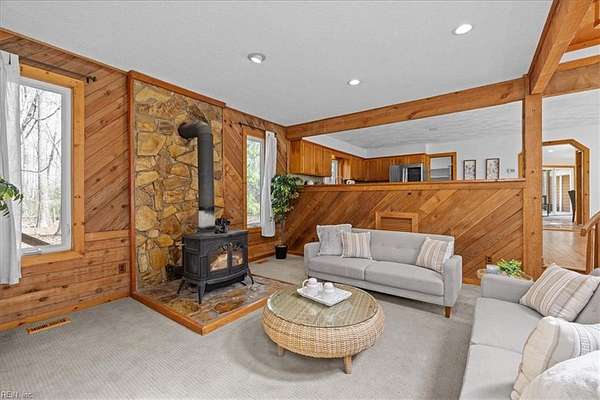 Tucked away on over three private acres in the sought-after King James Colony, this stunning Craftsman-style home offers the excellent blend of space, privacy, and charm. With over 3,200 square feet, this home features six spacious bedrooms and a private office just off the primary suite-great for work or relaxation. The updated chef's kitchen is designed for both everyday living and entertaining, while vaulted ceilings and abundant natural light create a warm, inviting atmosphere throughout. Step outside to your private back deck complete with a built-in hot tub, great for unwinding. An oversized two-car garage and a separate stable with its own workshop add incredible versatility. Endless possibilities await-experience peaceful country living at its finest.