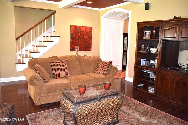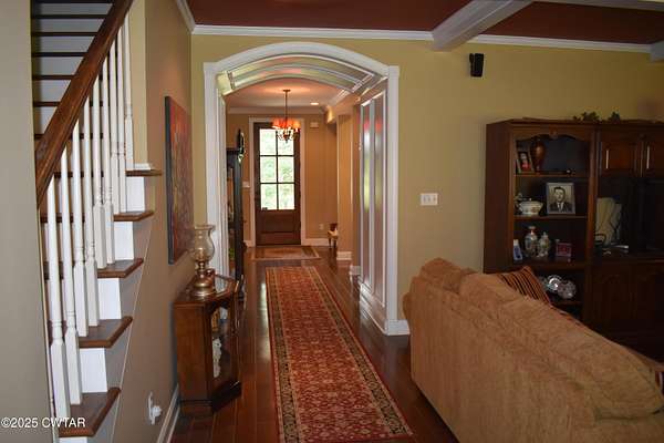 - Beamed Ceilings, Bookcases, Ceiling Fan(s), Central Vacuum, Commode Room, Double Vanity, Eat-In Kitchen, Entrance Foyer, Granite Counters, High Ceilings, Kitchen Island, Open Floorplan, Pantry, Soaking Tub, Walk-In Closet(s)