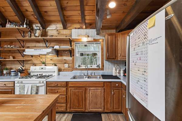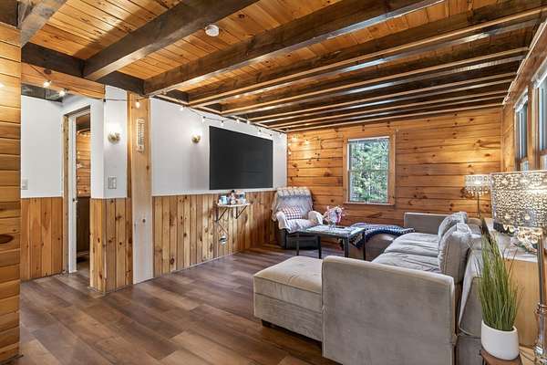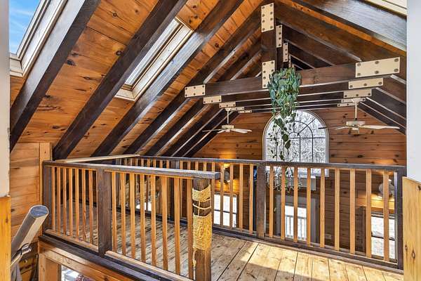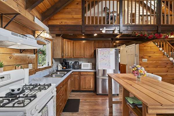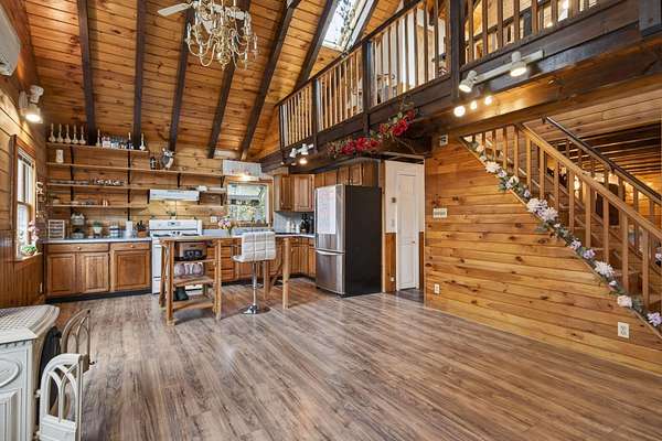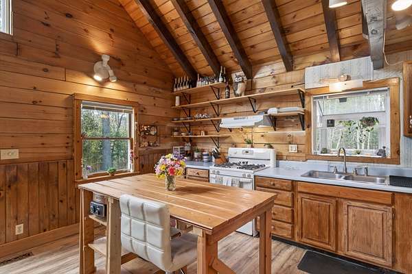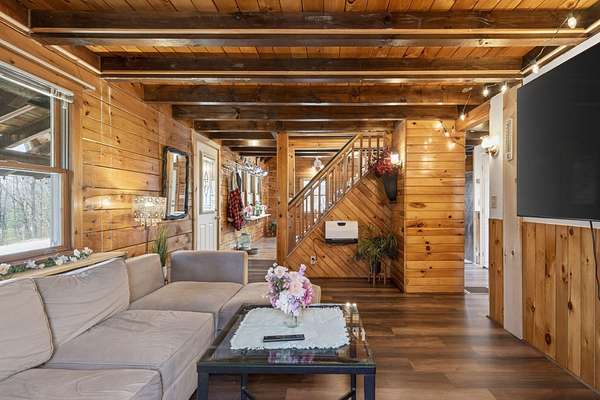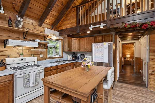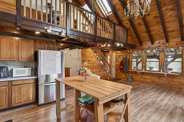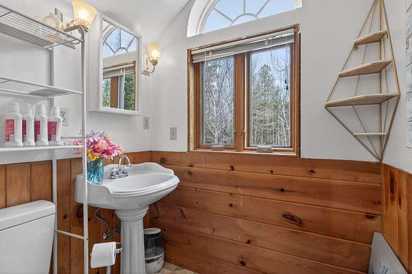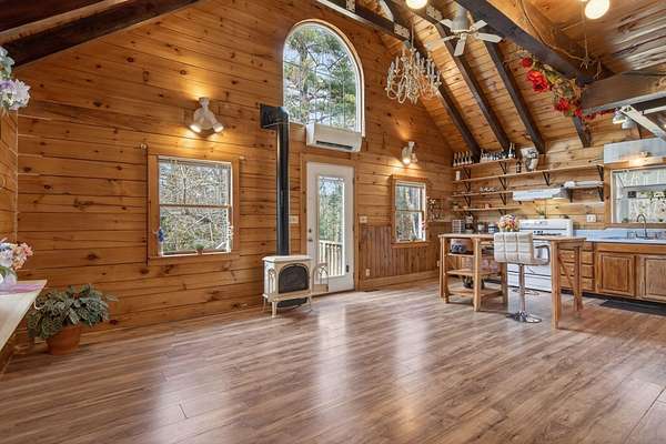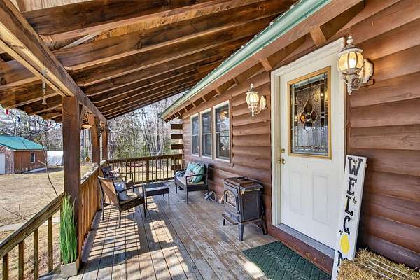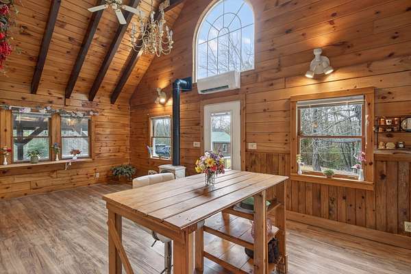 Check out this absolutely charming home set on 2 peaceful acres in Woodstock. Even before stepping inside, the inviting covered porch welcomes you--perfect for relaxing and unwinding. Inside, the kitchen impresses with vaulted ceilings and an open loft above, creating a bright and airy feel. A recently installed heat pump provides efficient cooling in the summer and serves as a great source of supplemental heat alongside the cozy free-standing gas fireplace. The main level offers the convenience of a first-floor bedroom and full bathroom, ideal for one-level living. Upstairs, you'll find a spacious second bedroom and an additional full bathroom. The full basement provides ample storage space, complemented by a brand new oil tank for added peace of mind. Outside, the detached garage offers even more storage or workshop potential. This home is a great option as a full time residence or seasonal getaway, with Mt Abram Ski Area being a quick 12 minute drive and only 7 minutes from the Bryant Pond boat launch.