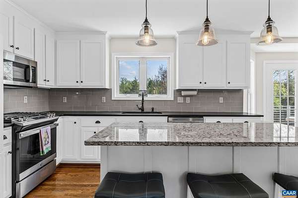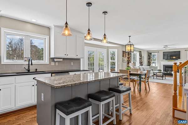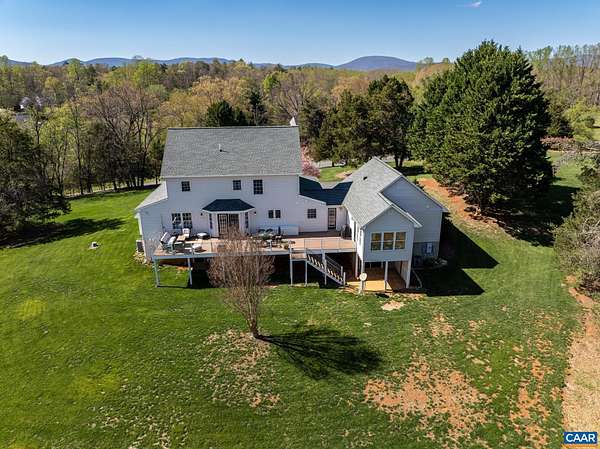 Welcome to 715 Windrift Drive, a thoughtfully designed country home offering timeless charm, modern updates, and flexible living options. Nestled on 2.29 serene acres in Earlysville's wine country, this nearly 3,000 sq ft abode features a spacious ~2,000 sq ft main home and a ~1,000 sq ft attached in-law/rental apartment. Renovated in 2024 the home is perfect for multigenerational living or added income. The main level features all hardwood flooring and includes a private den/office, a multi-use dining/music/office, as well as an open-concept kitchen, breakfast area, and family room with gas fireplace. Gather in the updated kitchen sitting at the large central island, ideal for entertaining. Crisp white cabinets, granite countertops, new gas range and dishwasher. Primary suite features a fully renovated en-suite bath with dual vanities and custom walk in shower. Amazing addition can serve as a first floor primary suite, you'll love morning coffee in the sunroom! The inviting 8' deep wrap around porch embodies southern charm swinging watching the sunset. The expansive 14' x 41' deck spans the back of the home for entertaining, grilling or watching the wildlife. Finish the basement or store all your extras in 2 basements! Call Now!