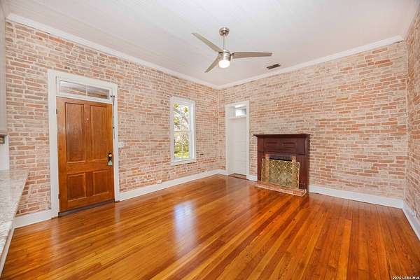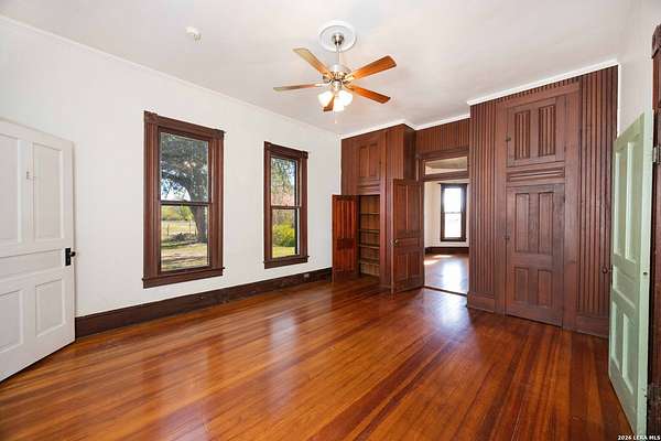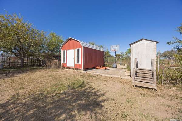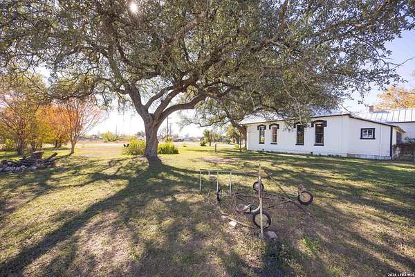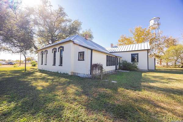Historic character and timeless appeal on 3.79 acres in the D'Hanis school district! This unique home has tons of natural light and warm architectural details, including exposed brick walls, beadboard ceilings, antique doors and windows, and hardwood floors throughout. The large, updated country kitchen features granite countertops and vintage metal cabinets repurposed from the original headquarters of Valdina Farms. In 2021, new wood siding and custom wood windows on the north side of the home and a new metal standing seam roof were installed. This home offers a flexible floor plan with a finished attic and bonus spaces ready to fit a variety of purposes. The property, which includes city water, a private well, multiple outbuildings, and a workshop, provides ample space for hobbies, gardening, horses, and/or 4-H projects. With majestic oak trees in a uniquely private setting, this home is the perfect blend of rural charm and small town convenience.