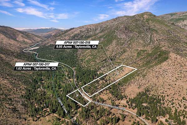 Est $445/moMotivated seller-$15,000 price reduction! Two separate parcels totaling approximately 11.56 acres located off Diamond Mountain Road in the heart of Indian Valley. This beautiful raw land borders National Forest and is zoned for horses. The property has been professionally treated post-fire with hazard tree removal, brush clearing, and mastication. Ideal for a future homesite, recreational use, or long-term investment.
