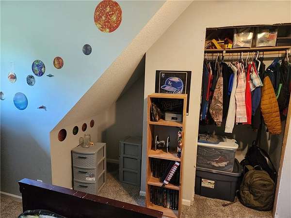 Recent updates include a new hot water heater and new carpet in lower level bedroom. Additional highlights: finished basement, outbuildings for storage or hobbies, and location in the sought-after Lawson School District with easy access to I-35.
