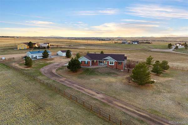 Classy brick home on 6 acre horse property with all paved roads, fiber-internet and only 20 minutes to shopping, restaurants & entertainment. This 4 bedroom, 3 bathroom, Ranch Style home includes a fully self-sufficient apartment with private entrance. The main level has an open floorplan with hardwood floors, vaulted ceilings and beautiful Mountain Views! The kitchen boasts a walk-in pantry and was recently updated with new, soft close cabinetry with under-cabinet lighting, granite countertops and a double oven with 6 burner gas cooktop. The Primary Bath was also remodeled in 2025. The walkout basement offers a large game room, private office, lots of storage space and a beautiful apartment. The natural lighting, built-in entertainment center, 2nd kitchen, laundry, bathroom and private bedroom with a large, organized, walk-in closet makes this basement a great Guest House. Your horses will enjoy the clean, 3 stall barn with stall mats, turnouts, tack room, plus 2 large corrals, a 48 ft. round pen and a large open pasture. There is 15x15 pen for your smaller friends and an 8x10 Chicken coop, complete with chickens. Mature Pine & Apple trees and a vegetable garden. All fenced with split rail posts & 2x4 wire. The additional 30x24 ft. detached garage has plenty of room for your toys and makes a great workshop. New carpet and hardwood floors throughout the entire house in last four years. High-quality exterior painting comes with a transferable warranty. Come enjoy the breathtaking sunsets, fresh air and short commute to country living. The Priefert panels, round pen, saddle racks, chicken coop, mud room seat, basement microwave, refrigerator & washer & dryer are all included and the seller is offering a $20,000 credit to the buyer at closing towards landscaping or interest rate buy down.