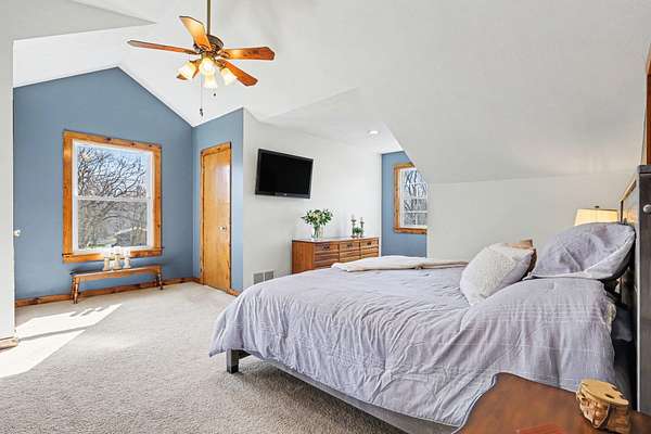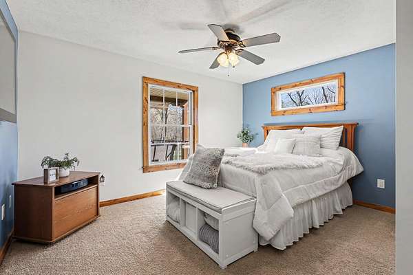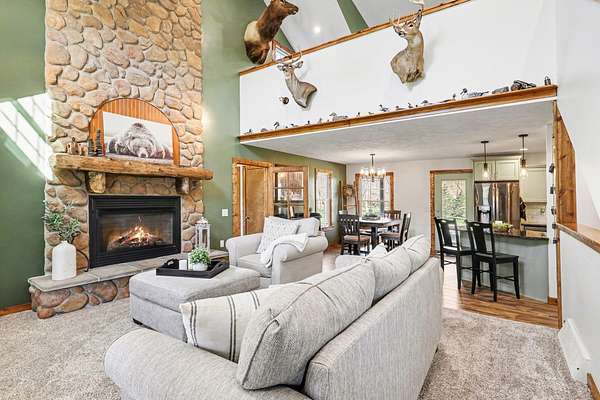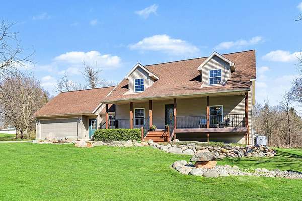Set on 2.4 private, park-like acres in Caledonia Schools, this move-in ready home offers space, privacy, and functional design minutes from everyday conveniences. With 1,943 sq ft above grade and 760 sq ft finished below, the home features 3 bedrooms, 2.5 baths, and an open-concept layout. The main level includes a living area with gas fireplace, kitchen with granite countertops, ample storage, main floor laundry and access to two composite decks overlooking the setting. Two main-floor bedrooms offer flexible use for guests, home office, or everyday living, supported by a full bath. The upper-level primary suite features dual walk-in closets, jetted tub, tile shower, and loft. Finished lower level includes custom bar, fireplace, lounge, sauna, and half bath. 2-stall garage, mudroom, new water heater (2024), generator hookup, and additional well. BATVAI.