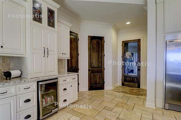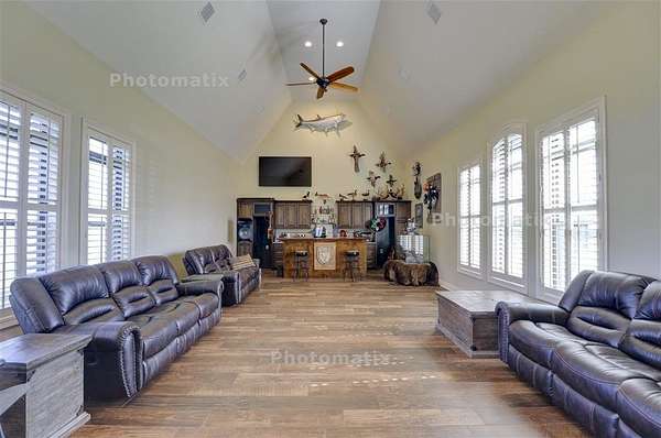 Experience lakeside living at its finest in this stunning custom-built waterfront home on Moss Lake. Situated on 2 beautiful acres, this elegant residence offers over 6,500 square feet of living space designed for comfort, entertaining, and breathtaking views. Step inside through the foyer and discover the craftsmanship and thoughtful design that defines this home. The layout includes a formal living room and a spacious family/game room perfect for entertaining guests or relaxing with loved ones. The chef's kitchen is a true centerpiece, featuring a large center island, Thermador 6-burner gas cooktop, Cafe Series double oven, walk-in pantry and a Butler's pantry for seamless hosting. The open dining area and breakfast nook offer panoramic water views and an easy flow for everyday living. The primary suite is a private retreat complete with his and hers walk-in closets, a spa-inspired bathroom with a soaking tub and a walk-in shower. Each of the four spacious bedrooms offers an en-suite bathroom, ensuring privacy and convenience for family and guests alike. Enjoy movie nights in the dedicated home theater or step outside to the expansive outdoor area featuring a half bathroom, boat house and wharf with a fish cleaning station, perfect for lakefront living and entertaining. Additional highlights include a large laundry room with ample cabinetry and storage, abundant built-in storage throughout the home, a study ideal for remote work or library use, high-end finishes and meticulous craftsmanship throughout. This remarkable property combines elegance, functionality, and the natural beauty of Moss Lake offering a rare opportunity to own a truly exceptional waterfront estate.