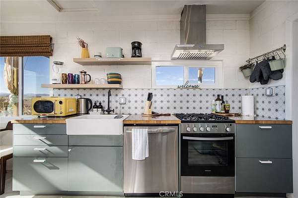 Sitting on a spacious lot with breathtaking mountain views, this home features 2 bedrooms and 1 bathroom, thoughtfully designed with comfort and style in mind. Inside, you'll find an open-concept layout, abundant natural light, and tasteful finishes throughout. The kitchen is a standout with unique appliances, ample storage, and a layout perfect for entertaining or enjoying peaceful desert evenings at home.