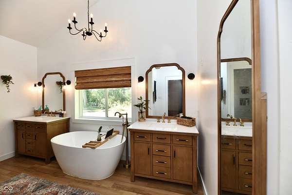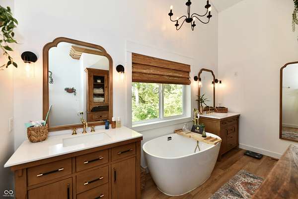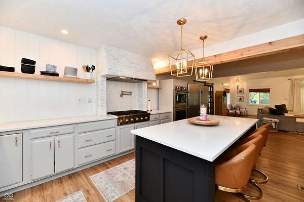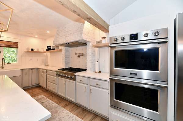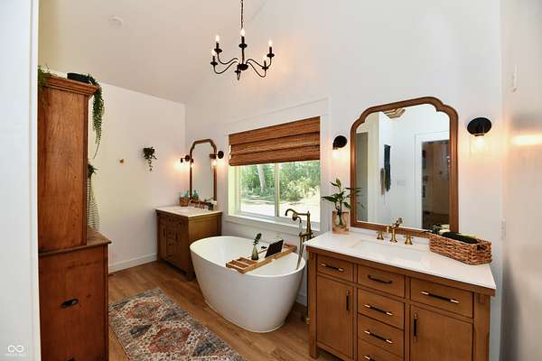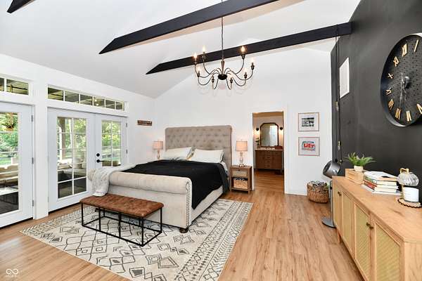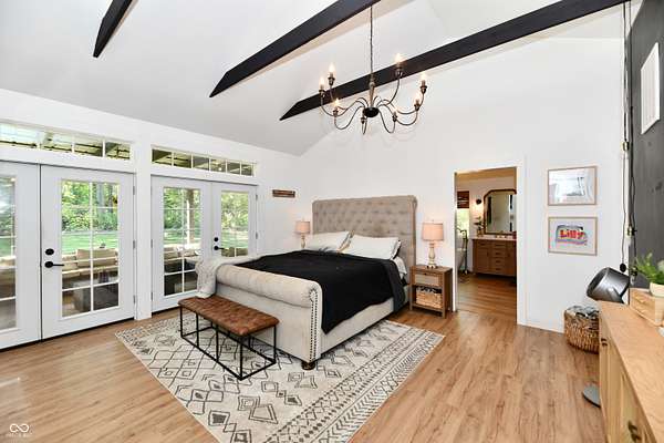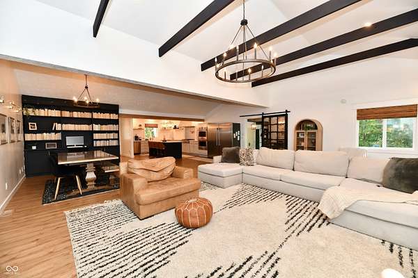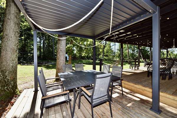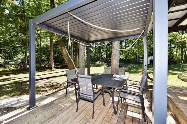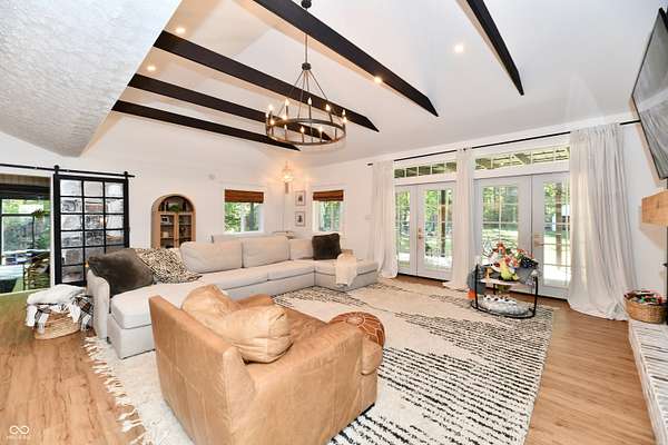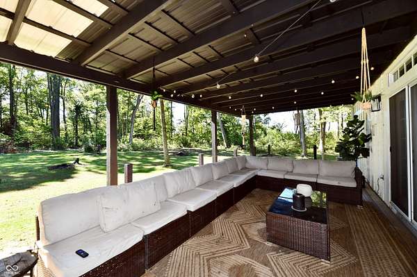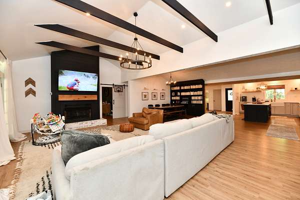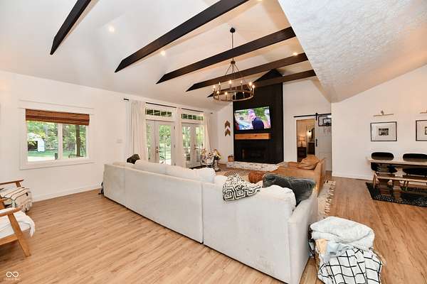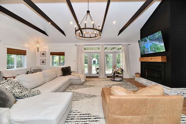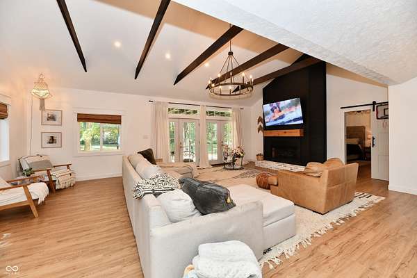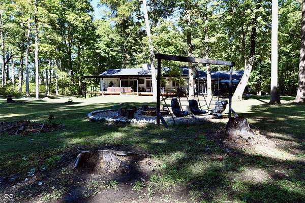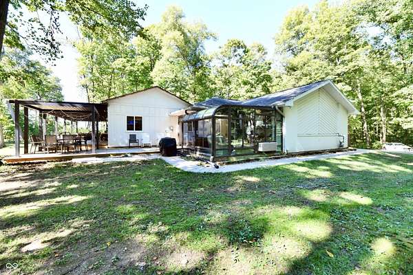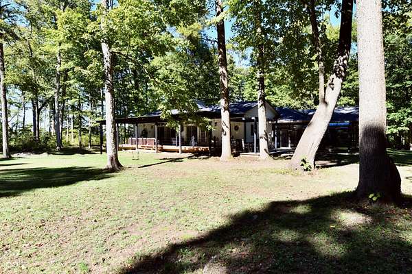 Welcome to your own private WOODED oasis! This beautiful ONE-LEVEL home with a finished basement sits on 6.28 peaceful acres. A LONG driveway winds through a park-like setting, leading you to your new dream home. Step inside to a spacious hallway that OPENS up to an inviting, open floor plan. The kitchen has been completely RENOVATED and features a huge island, plenty of cabinets, granite countertops, and all new appliances - including a pot filler. The cozy dining area has a cathedral ceiling with beams and charming built-in bookshelves, creating the perfect space for family dinners or entertaining. The open, airy living room is centered around a gas log fireplace and features a cathedral ceiling with beams and two french patio doors that lead to the back deck and yard. The primary suite is simply STUNNING - spacious and modern, with an electric fireplace, cathedral ceiling with beams, built-in bookshelves, walk-in closet, and two french patio doors, giving you access to the deck. The luxurious en-suite bath OFFERS two vanities, a soaking tub, and a walk-in shower. Two additional bedrooms share a Jack and Jill bathroom on the main level. The glass-enclosed sunroom lets you enjoy the BEAUTY of every season - perfect as a home office, reading nook, or relaxing retreat. The FINISHED basement adds even more living space with a family room and two bedrooms, plus a convenient second laundry area (there's one on the main level as well). Outside, you'll LOVE the large yard, complete with a fire pit, open concrete patio, and an expansive 40x12 deck. Recent UPDATES within the past two years include: an addition to the house that added 1400 sq. ft, new well, HVAC, siding, gutters with gutter guards, two fireplaces, water softener, deck and railings, blinds, front storm door, all-new bathrooms, and new patio doors and windows in the living room and master bedroom. Seller is wiling to give a floor allowance.