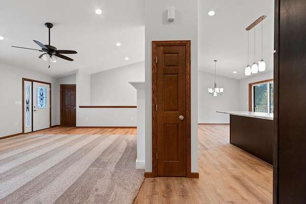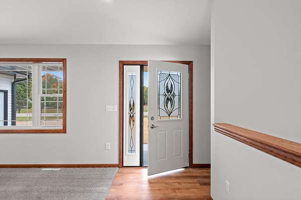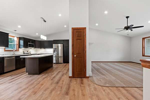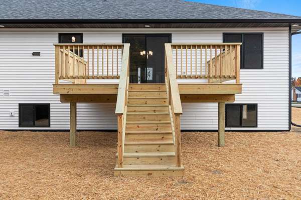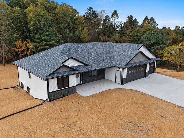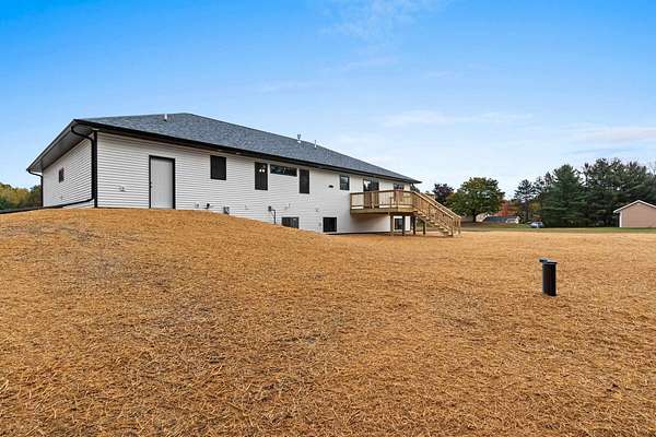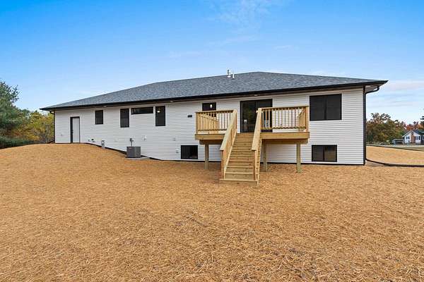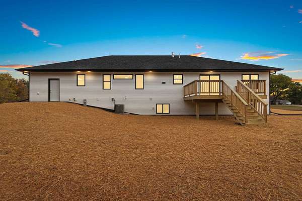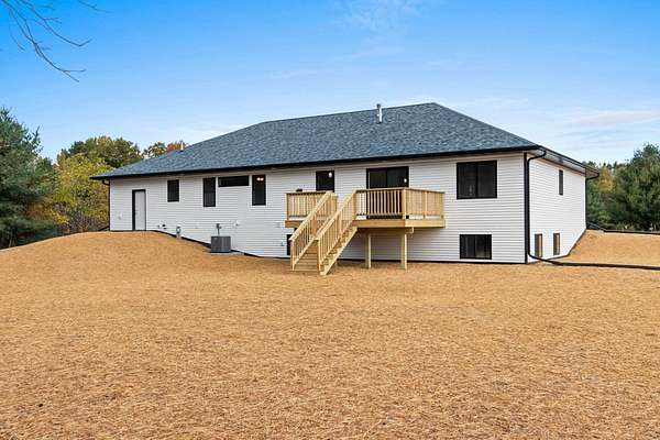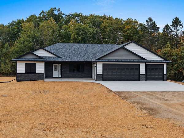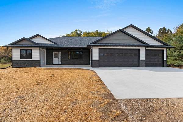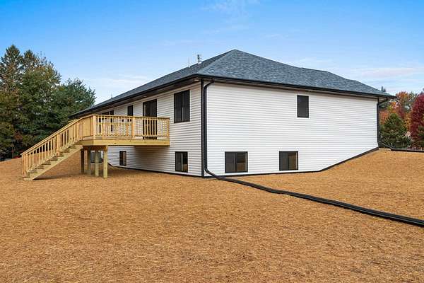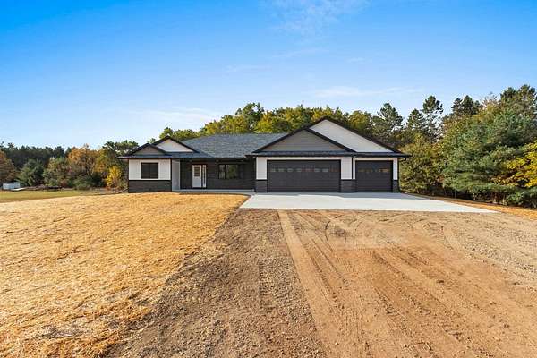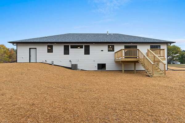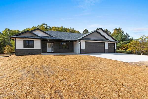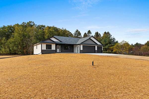 Fantastic new construction with a lot of extras that you'll love! Already completed is a wonderful deck, seeded yard, finished garage w/ one stall double deep. There is room on this 1.8 Acre lot for an outbuilding and no restrictive covenants. You'll appreciate the location being close to the city, hospital, school, stores, and easy highway access. This home features a split bedroom design, airy vaulted ceilings through the living space, first floor laundry, a large center island, SS appliance package, a primary suite w/ bathroom & Walk-in closet, living room w/ gas fireplace and a large open concept basement w/ egress windows and stubbed for bath, offering a blank slate to finish as you'd like. Book your showing today! 48hrs binding acceptance required, some photos virtually staged.