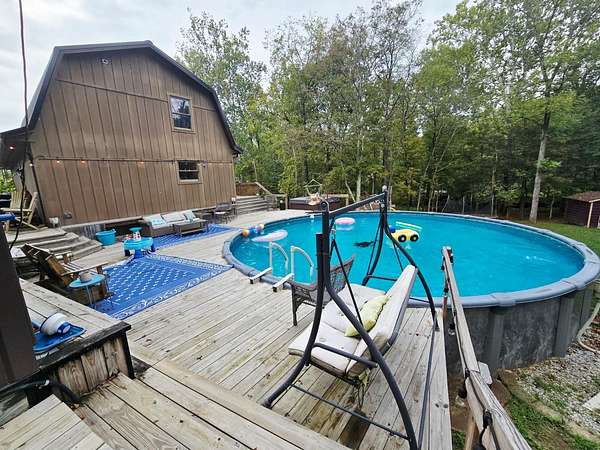 Est $3,763/moBeautiful chalet style home with 4 bedrooms and 3.5 baths. Has an above ground heated pool and hot tub surrounded by a huge deck for entertaining. 2 car oversized garage with concrete floor and 220 elec. The bonus is the massive 40x80x16 pole barn with car lift, jib crane and finished loft. Has office w/full bath that could be considered additional living area. Barn is second to none. Come take a look today!
