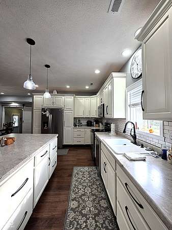 - Attic Access, Breakfast Bar, Ceiling Vaulted, Entrance Foyer, In-Law Arrangement, Kitchen Island, Paddle Fan, Wood Work Painted