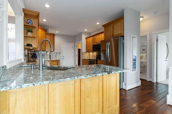 - Breakfast Bar, Ceiling Fan(s), Eat-In Kitchen, Entrance Foyer, Primary Downstairs, Soaking Tub, Walk-In Closet(s), Wet Bar