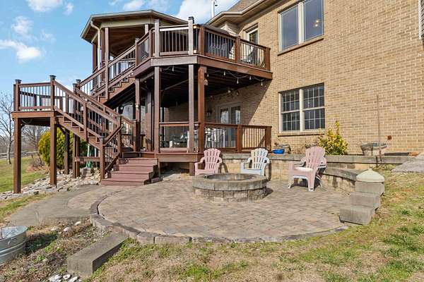 Welcome to your private retreat in the sought-after Shiloh Pointe, where space, comfort, and convenience come together. This beautiful, well maintained 4-bedroom, 4-bath home offers 3,899 square feet of thoughtfully designed living space on nearly 4 acres, one of the largest lots in the neighborhood. Just inside, the inviting great room showcases a stone gas fireplace that offsets the soaring windows of the adjoining dining room. The updated kitchen abounds with space, granite and enough counter to satisfy any home chef. Just off the great room, enjoy peaceful views and outdoor living from either of the 2 covered patios with maintenance-free Trex decking, and a fire pit large enough for the serious entertainers. The generous main level primary suite serves as a true retreat, featuring a private entrance to the covered patio, perfect for those serene sunset views. A thoughtfully designed split-bedroom floor plan provides comfort and privacy as the additional two bedrooms and a full bath complete the main level. Upstairs you will find the 4th bedroom, full bath, flex room and a sizeable closet; ideal for large families or visiting guests. Downstairs is the fully finished basement featuring an expansive family room that leads to the lower covered patio, already furnished with a swing - waiting for you to relax on those long summer nights. The downstairs space is so large that part of it could easily be turned into a 5th bedroom, home gym or office space. A full bath, kitchenette area, laundry room and utility garage complete the downstairs area. All of this is conveniently located just 15 minutes from Hamburg or Richmond, offering the perfect balance of tranquility and accessibility. Recent upgrades include a new tankless hot water heater, main furnace, smart garage door opener, smart thermostat upstairs and a recent satisfactory roof inspection. The wine cooler in the basement will remain but the refrigerator in the utility garage does not convey, the washer and dryer are negotiable. Homes like this in Shiloh Pointe are rare - don't miss the opportunity to make it yours.