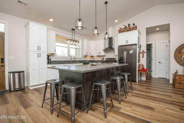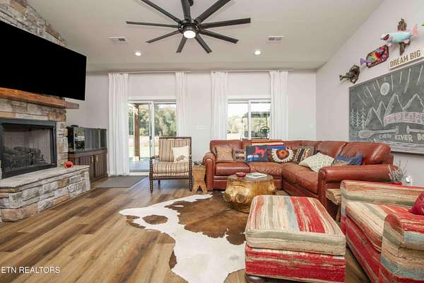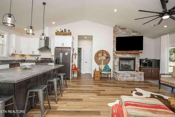 Riverfront custom home on 2.16 acres Discover tranquility and modern country living with this 2 year old home, perfectly situated on a serene stretch of the Holston River. This quiet sanctuary offers direct access to the water, allowing you to launch a kayak, fish, swim or watch the flow of the river from your private deck. The custom-designed open layout is centered around expansive windows that flood the home with natural light. Watch deer and wildlife from nearly every room. Step into a well-designed kitchen with custom cabinetry and an oversized entertainer's island with granite counter tops that opens into the spacious living area featuring a floor to ceiling stone fireplace. The large master suite features a spa-like bathroom with double shower heads. Outside, a sprawling rear, covered patio with ceiling fans provides the ideal setting for entertaining guests, rinsing off in the outdoor shower, or simply soaking in the quiet sounds of nature. Nestled in a peaceful, country location yet just a short drive to amenities. This is more than a home, it's a private retreat waiting to be filled with your memories. This home is not in a flood plain. Please refer to fema flood maps for the most accurate mapping. Schedule your private tour today.