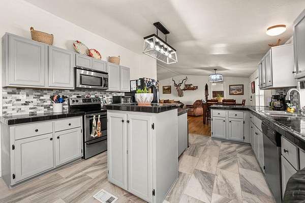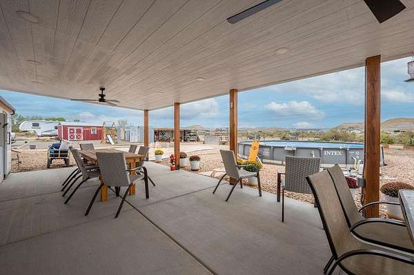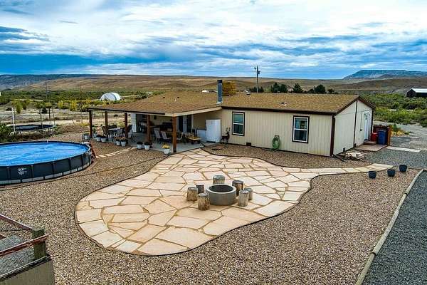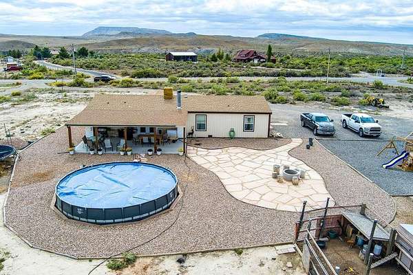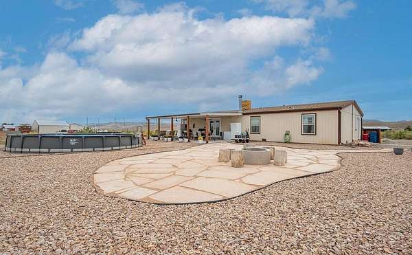 Looking for the perfect 5-acre hobby farm to raise chickens, livestock, or simply enjoy wide open space? This beautifully updated property has it all! The home has been thoughtfully remodeled with new windows, interior doors, a modernized kitchen with stylish tile work, backsplash, built-in microwave, and updated lighting. Other recent improvements include new blinds, a French patio door, landscaping, a covered patio, and a walk-in closet in the primary bedroom. Step outside to enjoy a 24" x 52" above-ground pool, cozy fire pit, and a small, insulated shop with electricity, perfect for projects or storage. The property also includes raised garden planters, a chicken coop, and plenty of space to expand or customize to fit your vision. With no HOA, you have the freedom to truly make this place your own! There's also RV parking with an RV dump and electrical hookup, making it ideal for travelers or guests. Whether you're starting your homestead, growing a garden, or just craving privacy and space, this property is ready for you. Schedule a showing today and see all it has to offer!