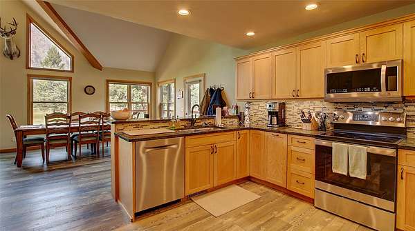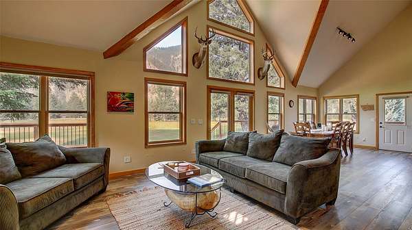 This absolutely gorgeous property is located in Rock Creek Valley and comes COMPLETELY FURNISHED. This beautiful 4 bedroom / 3 bathroom home sits on 2.71 private acres. Located 7 miles up RC Rd and less than 35 miles from downtown Missoula. This home would be ideal for a private residence, a fishing lodge or a VRBO/Airbnb nightly rental. Inside features a huge stone fireplace, open floor plan, bonus room granite countertops, high end kitchen appliances, engineered flooring, washer, dryer, two fireplaces, 4+ car garage and a huge family room for entertaining Plenty of room for boat and RV storage. All furnishings included are high end and in great condition. Outside you'll find a 32 x 40 shop with a carport, two decks and s irrigated yard with deeded water rights to Brewster Creek. The western boundary borders Forest Service land. Additional Rock Creek listings are available! Motivated seller! The famous Blue Ribbon river Rock Creek is right across the road. The lot is flat and could be ideal for horses. You're going to fall in love with this one of a kind property. Bring Offers!