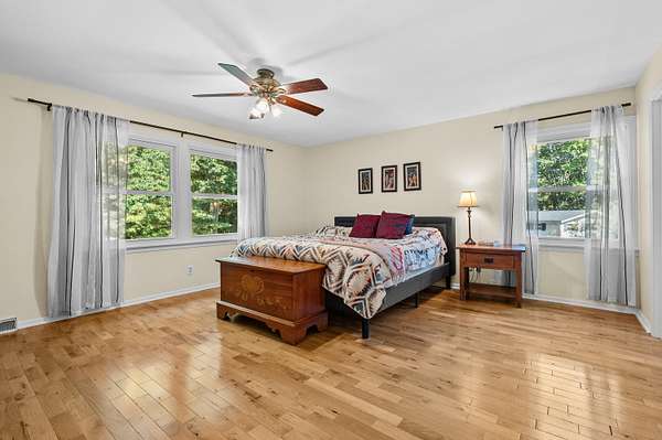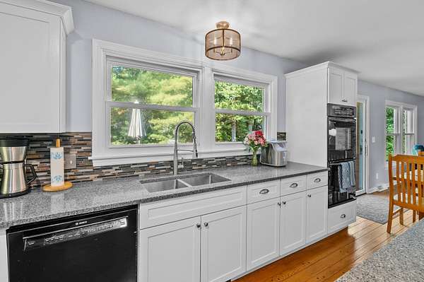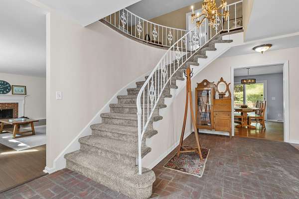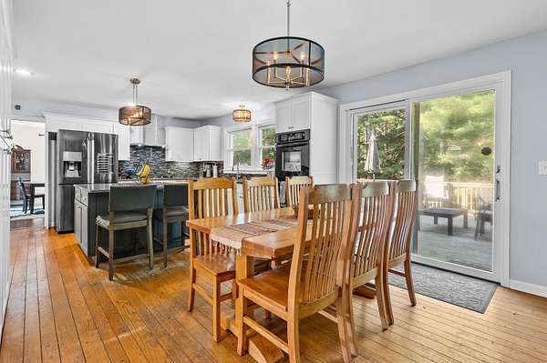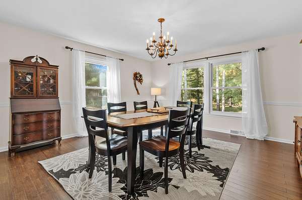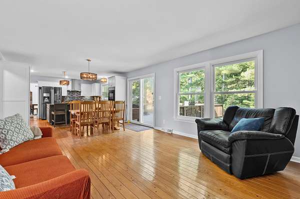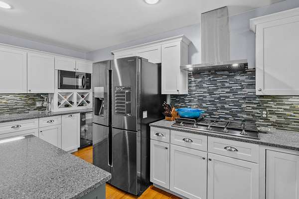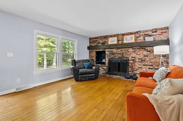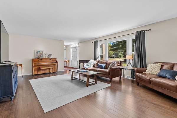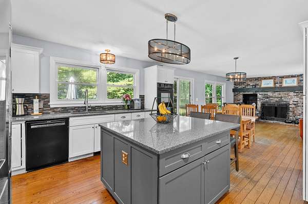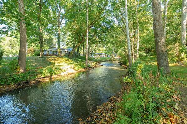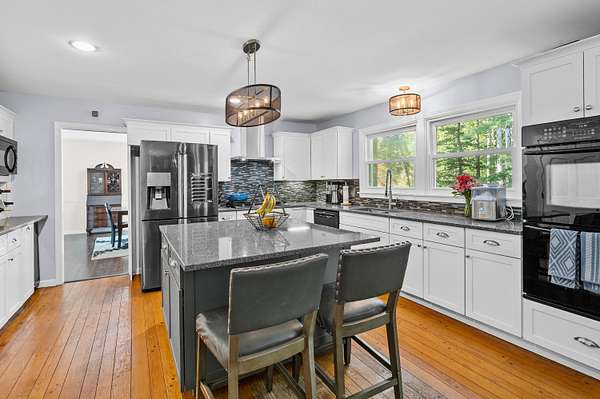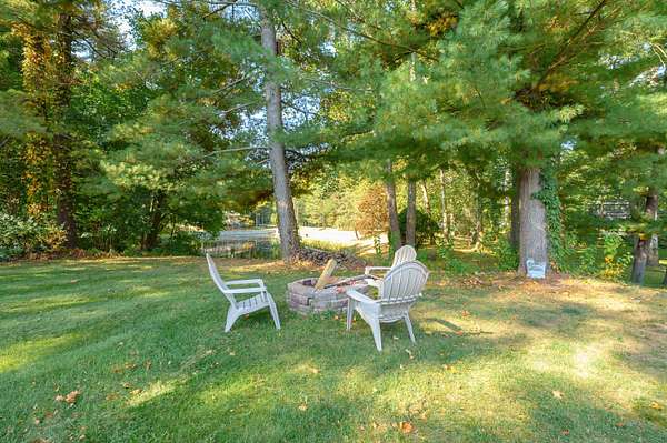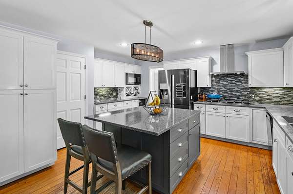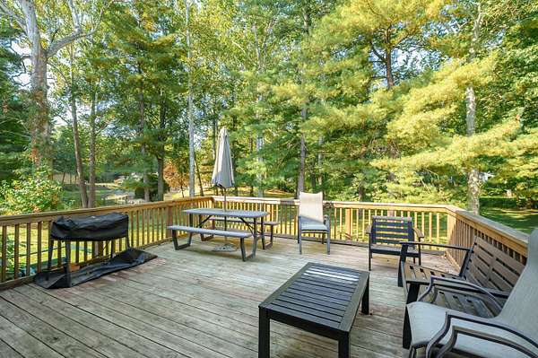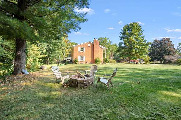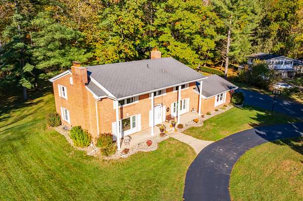 This elegant all-brick Colonial style home offers timeless style w/over 3,300 finished SF. Inside, the formal Living Room and Dining Room feature rich bamboo wood flooring, w/a cozy gas fireplace in the LR. The completely updated kitchen showcases new cabinets, quartz countertops, glass tile backsplash, a large pantry, island seating and top-of-the-line appliances.. including a 5 burner gas stove, double oven and wine fridge. Next to the kitchen is the informal eating area with sliders to a large deck where you can enjoy views of the impressive back yard framed by mature trees and the scenic Gun River. The inviting family room with solid oak floors and lovely brick wood burning fireplace rounds out the main floor. The elegant winding staircase leads to 4 oversized bedrooms , all with stunning hickory wood flooring. The primary suite is a true retreat featuring dual closets, double sinks, tile flooring and walk in shower. Come take a tour, and envision yourself in this beauty NEW ITEMS replaced all within the last month... well / pressure bladder tank / water softener! Sidenote from sellers... Although the property is in the FEMA flood plain, the sellers state the home has not flooded since they have owned it (purchased n 2012). The previous owners installed the berm in the backyard, and installed (3) sump pumps to insure no flooding in the future. The owners are required to have flood insurance on their home, currently at an addl $750/year