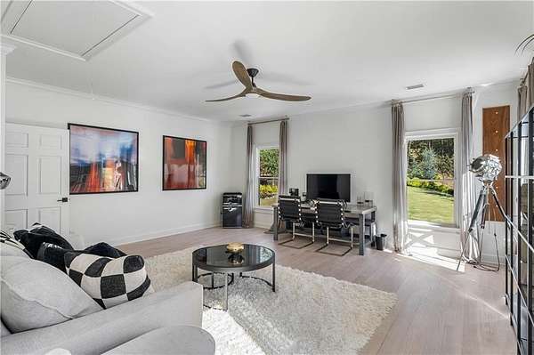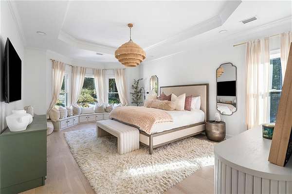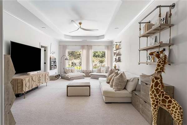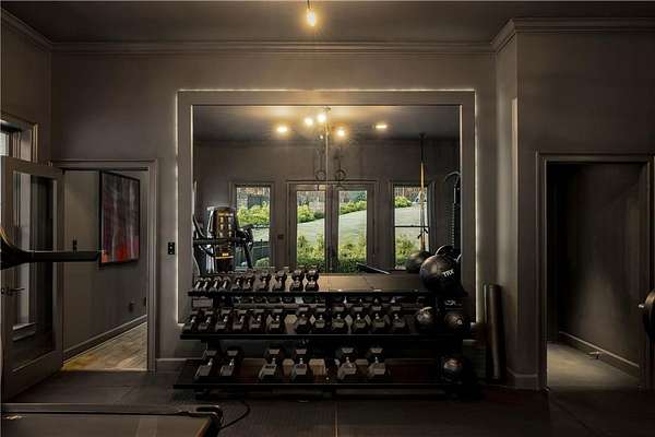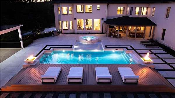 A Private, Gated Luxury Estate With a Full Resort Lifestyle Set behind its own gated entrance at the end of a private drive, this extraordinary estate is surrounded by winding creeks and towering 80-foot hardwood trees, creating a level of privacy and natural beauty that feels worlds away-yet the property sits just 1.52 miles from GA-400, less than ten minutes from Cumming City Center, and only minutes from Lake Lanier. Completely renovated, the home blends refined design with an astonishing collection of amenities, delivering a true resort-style living experience & unique entertaining opportunities in the heart of Cumming. Inside, the residence reflects a warm, sophisticated Restoration Hardware-inspired aesthetic rooted in balance, symmetry, and calming continuity. Gorgeous hardwood floors and exceptional designer lighting set the tone, while smooth plaster fireplaces add sculptural, modern warmth to the main living spaces. The open, flowing floorplan keeps the home elegant yet comfortable, with natural textures and intentionally layered finishes creating a sense of harmony throughout. Two exceptional primary suites anchor the home-one on the main level and a second, expansive retreat upstairs. The upper suite spans approximately 1,260 square feet and includes a fireside sitting area, beautifully designed his-and-hers custom closets, an oversized spa-style bath, and large windows overlooking the pool and wooded landscape. A dedicated 1,000 Mbps private fiber line powers the state-of-the-art Control4 smart-home system, offering seamless management of lighting, audio, security, and entertainment. Major upgrades include a newer top-of-the-line Camelot II roof, Pella windows and doors, a 30-zone irrigation system, and an elite soft-water filtration system supported by private well water. An attached four-car garage is complemented by an additional 840-square-foot drive-through RV garage. Outdoors, the estate unfolds into a complete recreational destination. A gorgeous heated pool and spa sit at the center, surrounded by an LED-lit tennis court, pickleball and bocce courts, a soccer field, basketball and volleyball courts, a 3,000-square-foot rubber playground, a 100-yard chipping range, a five-hole 450-yard disc golf course, a skeet area, a mini moto-cross track, and a 200-foot zip line-an unparalleled setting for activity, play, and hosting. Multiple outdoor living spaces, including a covered dining and lounging patio, a cabana, and a 2,800-square-foot pool deck, make the property ideal for gatherings of any size. Wellness is equally prioritized, with a 660-square-foot commercial-grade fitness center overlooking the pool and an infrared sauna equipped with salt therapy, aroma therapy, red-light therapy, and sound-vibration healing. The fully finished, recently renovated terrace level is an entertainer's haven, complete with a swanky bar, card room, music studio, fifteen-seat 4K theater, secondary living room, and direct walk-out access to the grounds. An additional guest suite on this level offers privacy for long-term guests or multigenerational living. Although completely private, the estate offers unmatched convenience-close to downtown Cumming, Lake Lanier, high-end dining, hospitals, major retail, and just an hour from Hartsfield-Jackson International Airport. The property may also be sold furnished, creating a rare turnkey opportunity. 7160 Bennett Road is more than a home-it is a destination, a retreat, an entertainer's paradise, and a complete resort-style living experience, offering beauty, privacy, and extraordinary amenities in one of Cumming's most coveted settings.