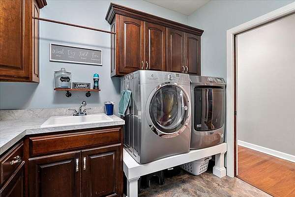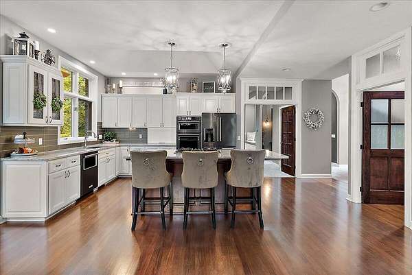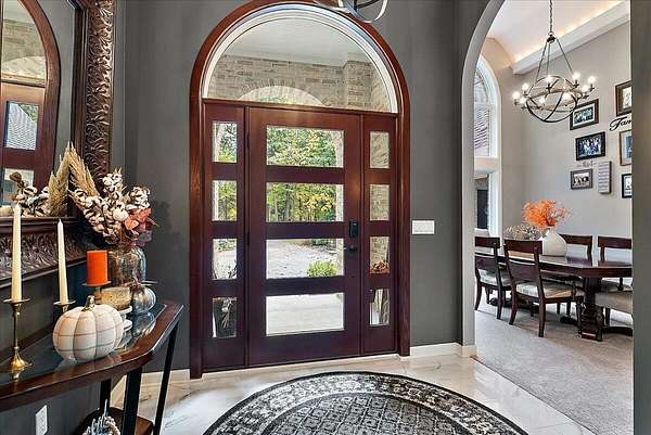 Welcome to this exceptional executive brick ranch tucked away on nearly 4 private, wooded acres in an exclusive, highly sought-after neighborhood within the Rockford School District. This stunning 5-bedroom, 6-bath residence offers nearly 5,000 sq ft of refined living space, completely updated from top to bottom-move-in ready with nothing left to do. Step outside to your own resort-style backyard oasis, featuring a saltwater pool with waterfall, expansive deck, patio, and gazebo-perfect for entertaining or quiet relaxation. Inside, luxury abounds with Brazilian Cherry hardwood floors, a main-floor primary suite, and a fully equipped lower-level suite with its own kitchen, ideal for guests or multi-generational living. Premium features include heated quartz countertops, in-floor basement heat, newer water heater, new pool pump, and a whole-house generator for year-round comfort and peace of mind. Car enthusiasts will appreciate 4 heated garage spaces - this home truly has it all!