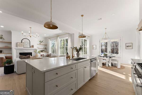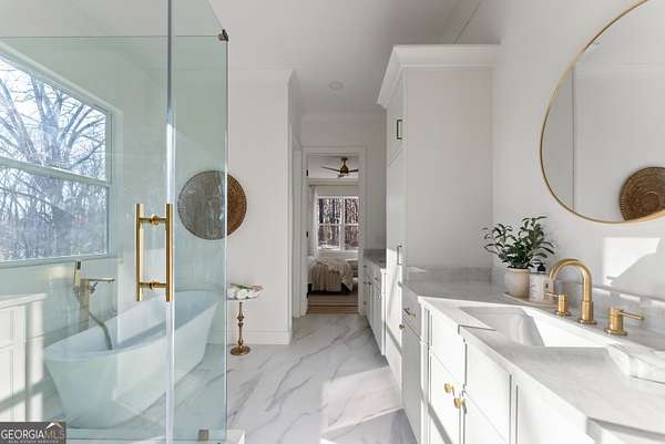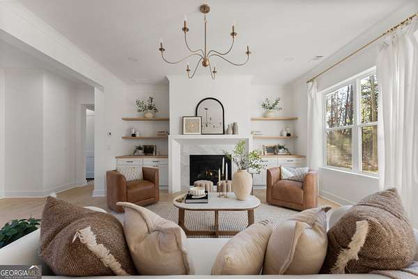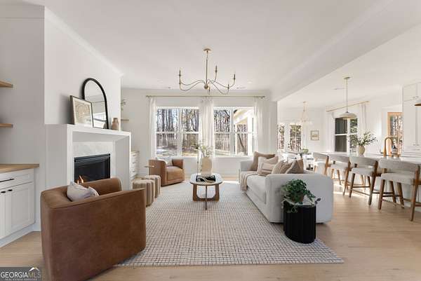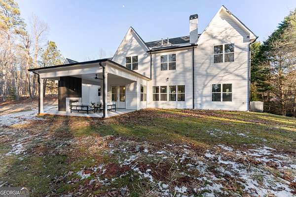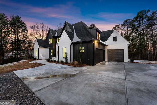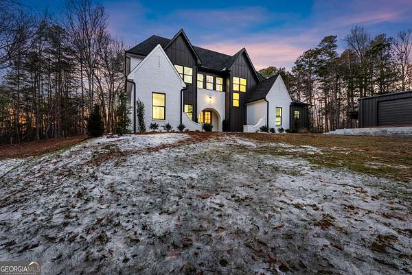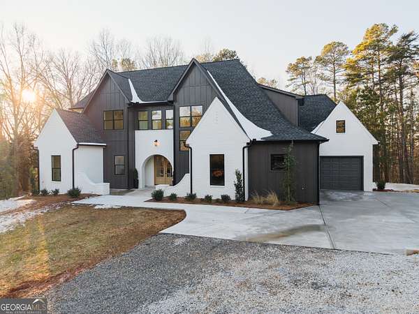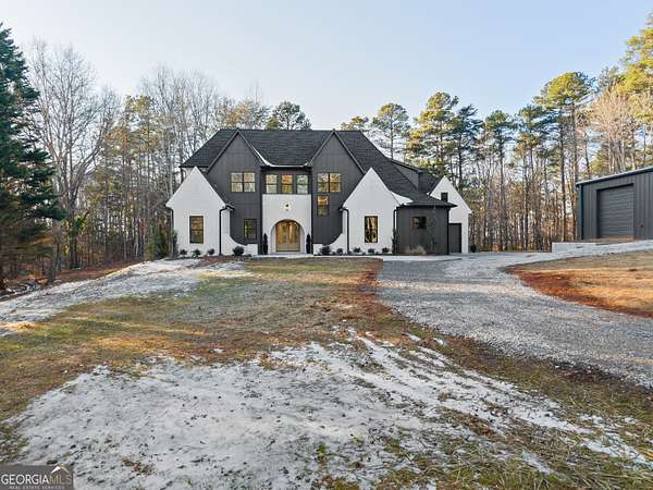 Brand-new, custom-built European farmhouse inspired by California-modern design, offering high-end fixtures, refined finishes, and thoughtful architectural detail throughout. Situated on a private lot with no HOA and no restrictions, this home provides rare flexibility with future opportunities to expand, personalize, or subdivide. The exterior features painted brick, vertical siding, dramatic gables, and clean architectural lines. Inside, light-filled interiors, wide-plank hardwood floors, and curated finishes enhance the open-concept layout. The chef's kitchen includes high-end appliances, an oversized quartz island, custom cabinetry, and an expanded walk-in pantry with space for a second refrigerator. The kitchen flows seamlessly into the living area with a gas fireplace and extends outdoors to a covered back patio with an outdoor fireplace-ideal for year-round entertaining and future backyard customization, including space for a pool. The primary suite on the main level offers privacy and spa-inspired comfort, featuring a luxury walk-in shower, freestanding soaking tub, abundant natural light, an oversized custom closet, and direct access to the laundry room. Upstairs includes a spacious media and game room with wet bar and beverage center, three generously sized ensuite bedrooms with custom closets, and a versatile flex room suitable for a home office, playroom, or additional bedroom. Notable Builder upgrades include hardwood floors throughout, a tankless gas water heater, expanded custom pantry, custom closets, a three-car garage, and a 1-year limited builder warranty. Enhancing the property is a 60x40 steel-frame workshop with 12-foot ceilings and three garage doors, ideal for boat or RV storage, a car collection, home gym, or additional workspace. The property has been platted into two separate tracts, offering the ability to sell the front tract or develop it for resale or rental income. List price includes both tracts. Located just 1.3 miles from Young Deer Creek Park and Boat Ramp, this property combines architectural design, modern amenities, flexible living spaces, and proximity to outdoor recreation. You have to see this home in person to experience all it has to offer!