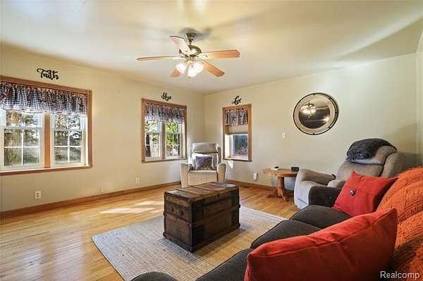 Private 25.5 Acre Estate in Grand Blanc – A Rare Opportunity! Located in Grand Blanc within the highly desirable Goodrich Area Schools district, this beautifully maintained 1,798 sq. ft. home has been lovingly cared for by the same owners for years and offers 3 bedrooms and 2 full baths, including a first-floor master suite with private bath. The home features a stunning two-story great room with fireplace, a spacious and well-sized sunroom with supplemental heating overlooking the backyard, and an updated kitchen with granite countertops, newer appliances, and ample cabinetry, along with a large laundry room and a second kitchen on the same floor for added convenience and functionality. Set on 25.5 acres of peaceful, wooded land with a running creek, apple orchard, and abundant wildlife, this property is perfect for those seeking privacy, hunting, or simply enjoying nature. The exterior includes a 3-car detached garage and two large barns (approx. 1,225 sq ft with 10’ height and 1,200 sq ft with 14’ height, both with concrete floors and upper storage), along with a handicap-accessible rail at the rear entrance for added convenience. A charming children’s playhouse adds a special touch, creating a fun and inviting space for kids or grandchildren. Nestled far back from the road with serene views from every window, this property offers endless possibilities while still being conveniently located near expressways and amenities. Adjacent property at 7149 Burpee Rd is also available, featuring a newer well and septic. Don’t miss this rare opportunity—schedule your private showing today!