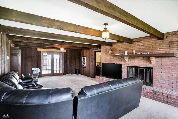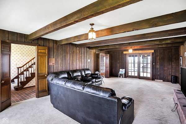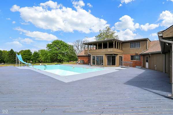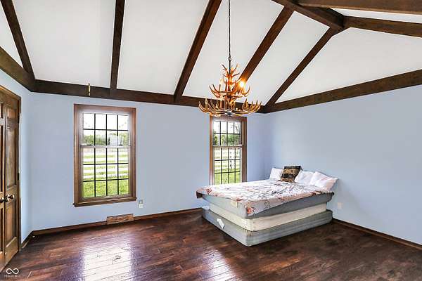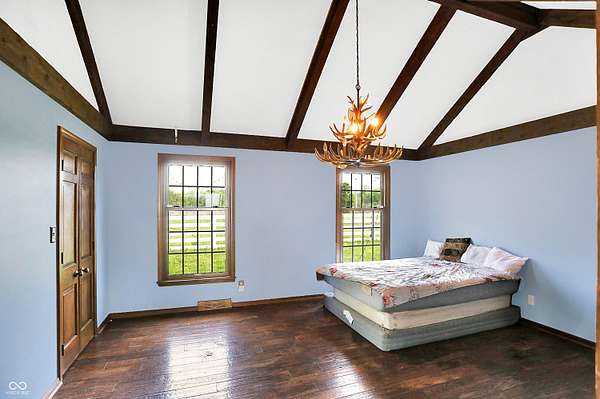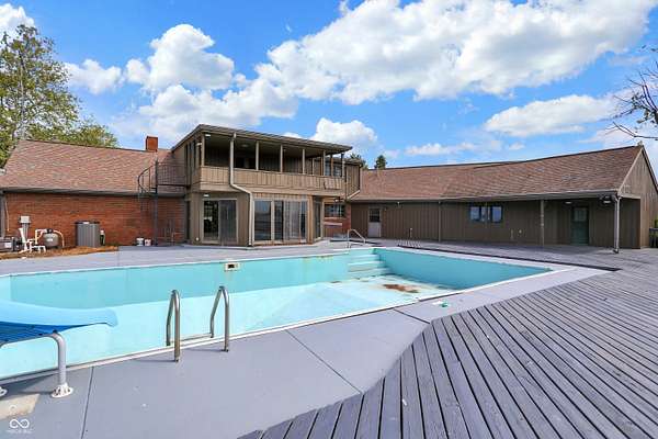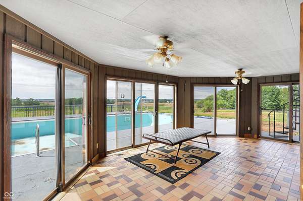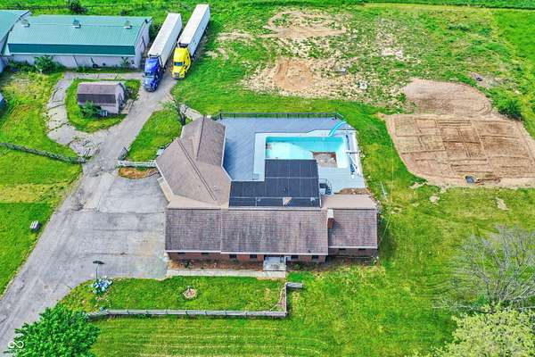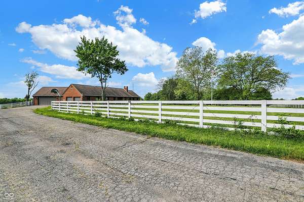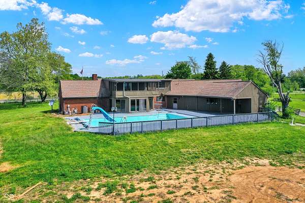Est $4,433/moThis property includes a modern barn and facility. The indoor arena measures 80x120 and features overhead doors, skylights, and ceiling heights suitable for hunter jumpers. The barn has six heated stalls with automatic watering, a heated wash rack, two tack rooms, ceiling hay lofts, and an office/viewing area that can also be utilized as a residence. A concrete-enclosed storage room could be converted into extra stalls. The north side of the barn offers covered trailer parking with complete hookups. Located just 2 miles from I-65, this home boasts a hilltop view of Columbus, an in-ground pool, a main-floor master suite, two laundry rooms, a spacious sunroom, two fireplaces, and handmade Fox cabinetry.