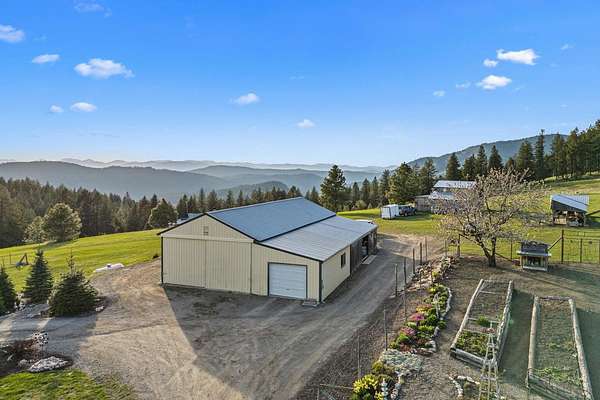 Experience Northeast Washington living at its best! This 30 acre hilltop beauty, 7 miles from Colville, offers breathtaking territorial views. The thoughtfully remodeled 4-Bed, 2.5-Bath home boasts upscale features like new wood plank floors and woodwork, plus sun-drenched kitchen with custom Alder kitchen cabinets. Expansive outdoor living spaces framed by gorgeous landscaping and panoramic views. Or, explore the endless recreational trails on nearby public lands. A 2,700 sq ft shop/garage, barn, huge garden shed and and more. Charming artist studio or private retreat is located adjacent to the huge fenced garden area. Garden/Orchard with raised beds and irrigation. Two wells w/large storage capacity. Acres of Pasture w/ Southern exposure & woods complete this estate.