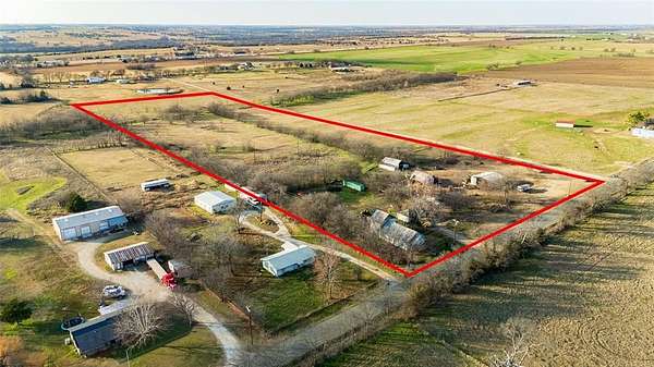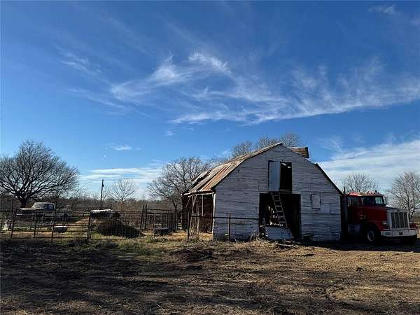 Excellent opportunity on 14.52 acres, just minutes from I-35. Property features 13.52 acres under agricultural exemption, a 1940's home and old barn on 1 acre (both may be candidates for tear-down or restoration), plus a garage, shop and corral. The land includes open pasture, mature trees, and a storm cellar. With its prime location near town and the interstate, this land also offers potential for future subdivision or development. (Buyer to verify zoning, utilities, and City or County requirements). Perfect for buyers seeking acreage for a homesite, a small ranch, or land with long-term development in growing North Texas. Lake Ray Roberts is less than 4 miles away!