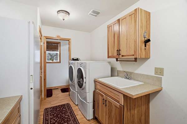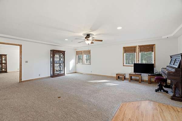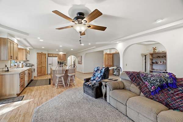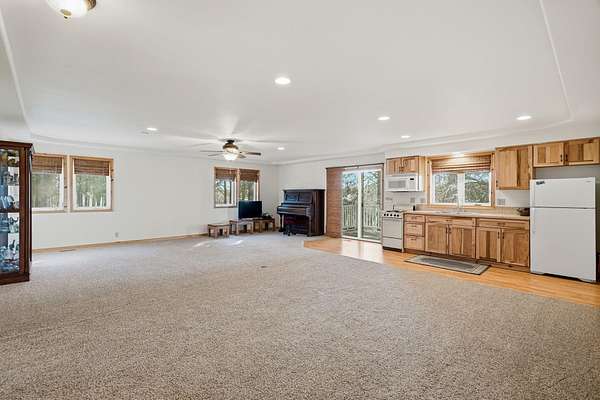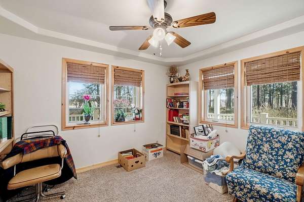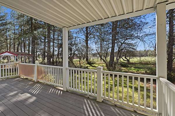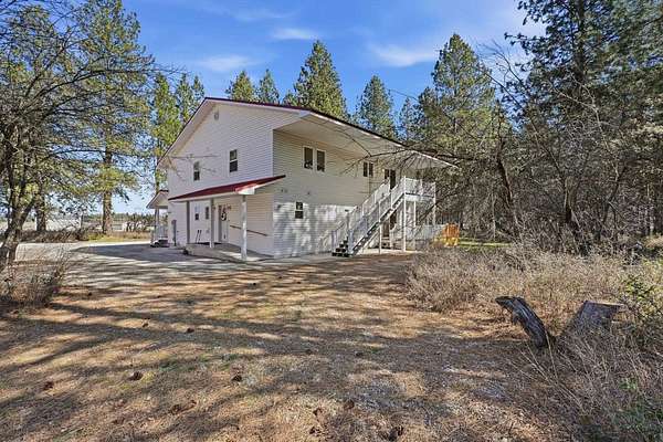 Set on just under 5 acres, this 5 bedroom, 4.5 bathroom home offers space, flexibility, and a layout designed for comfortable everyday living. Located in a quiet setting, it provides privacy while still being just a short drive to nearby amenities. Inside, the open concept design creates a natural flow between the main living areas, making the home feel both spacious and inviting. Generously sized bedrooms and multiple living spaces offer plenty of room to spread out, while still feeling connected. The layout is ideal for multi generational living, featuring a separate in law setup that allows for privacy and independence for extended stays or long term living. You'll also find abundant storage throughout the home, making it easy to stay organized. Step outside to enjoy the wrap around deck, perfect for taking in the peaceful surroundings or entertaining guests. The 1,200 square foot shop is another standout feature, offering endless possibilities for storage, hobbies, a workspace, or a home based business. A
