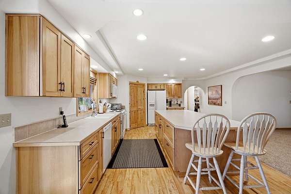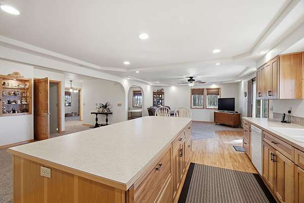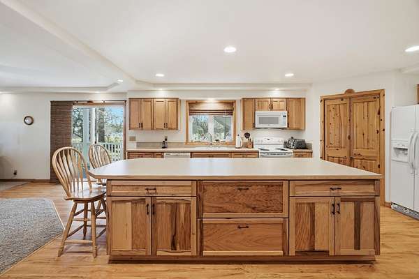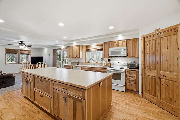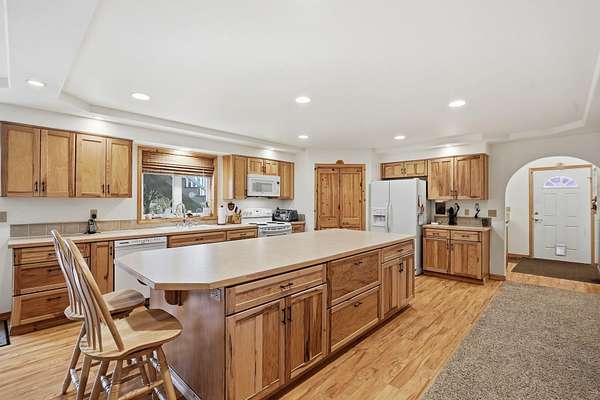 - In-Law Floorplan, Kitchen Island, Natural Woodwork, Pantry