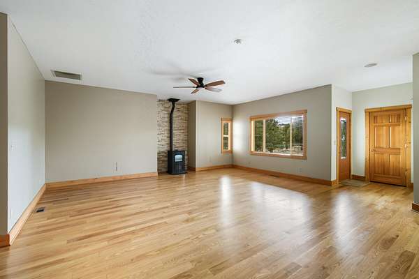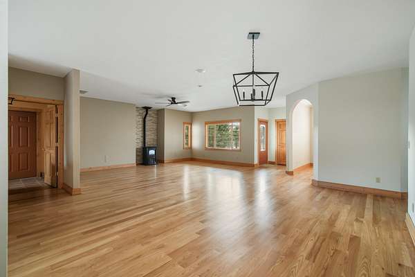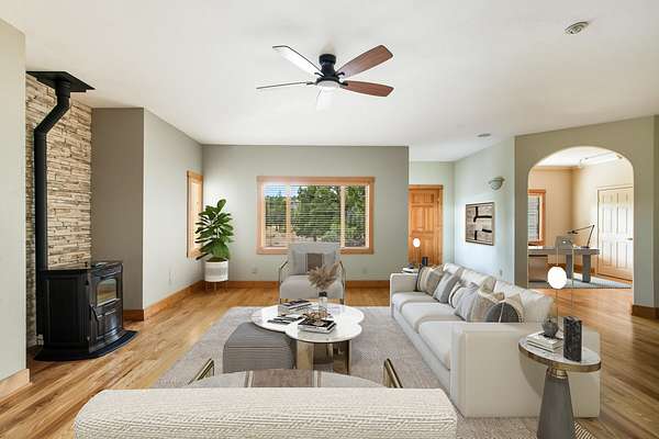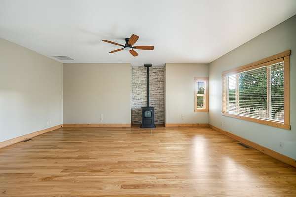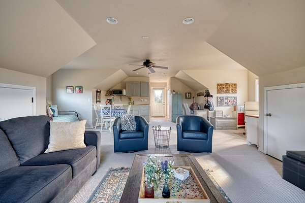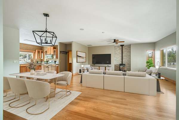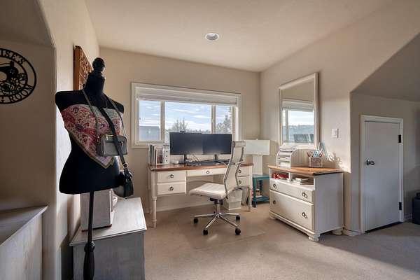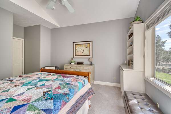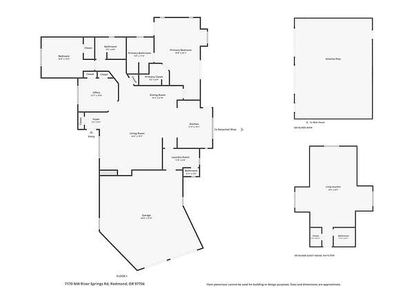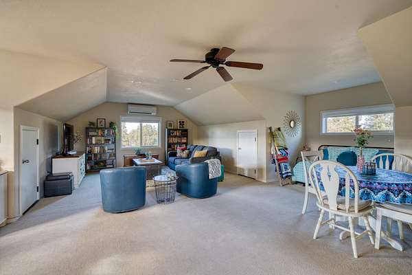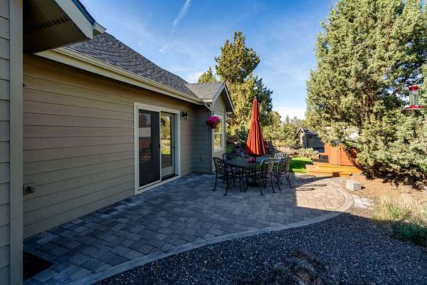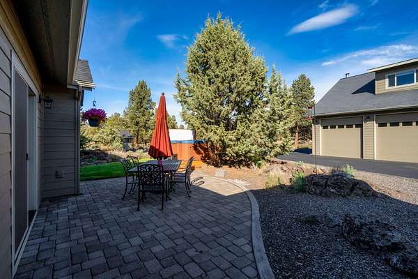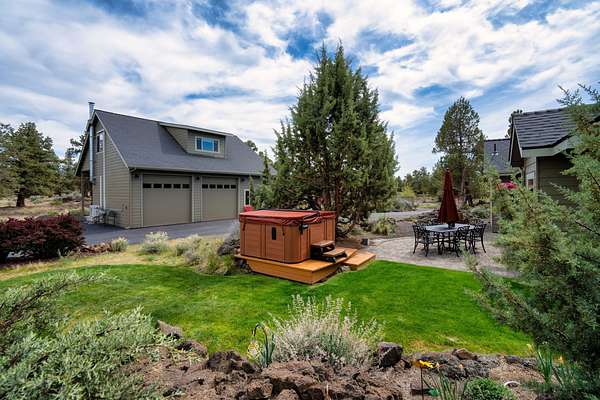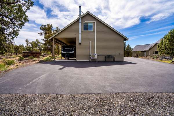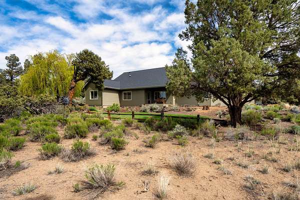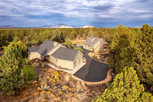 Just 15 minutes from downtown Redmond, this peaceful 11-acre retreat sits among mature junipers in the gated community of River Springs Estates, offering private Deschutes River access and 5,000+ acres of public land to explore, hike, and fish. The single-level home is both comfortable and practical--kept in beautiful shape and thoughtfully updated with a brand-new roof, newer exterior paint, updated kitchen, cozy pellet stove. The flexible layout features a guest room and a third bedroom or office, ideal for remote work or hobbies. The remodeled primary bath features a spacious tiled shower, and the oversized 3-car garage connects to a handy utility room with half bath. Outside, you'll find an insulated 805 sq ft shop with two 10' roll-up doors, wood stove heat, and covered RV parking with hookups. Above the shop, a charming 615 sq ft guest space offers a private entrance, kitchenette, bath, and generous storage. Enjoy plenty of elbow room, bluebird skies, and a touch of adventure.