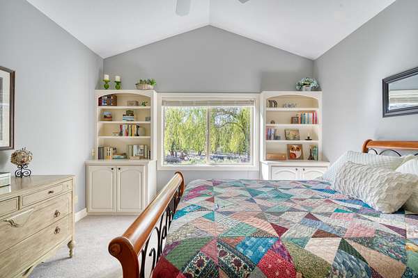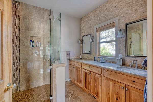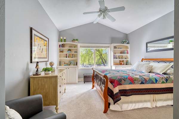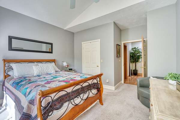 - Breakfast Bar, Ceiling Fan(s), Double Vanity, Granite Counters, Linen Closet, Open Floorplan, Primary Downstairs, Soaking Tub, Tile Shower, Vaulted Ceiling(s), Walk-In Closet(s)