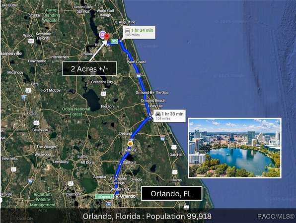 Presenting a 2.00-acre High-and-Dry parcel (Flood Zone X) located on Old State Road 207 in Elkton, FL, just minutes from St. Augustine, I-95, Hastings, and the beaches. Zoned RS-2 (Residential Single-Family), this property allows a site-built Single-Family Home and residential accessory structures such as garages, workshops, and storage buildings. The land offers paved road frontage, a peaceful rural setting, and ample space for a private homesite, garden area, or future expansion. No HOA or CDD, giving you full use of your land for your plans. Bring your RVs, outdoor toys, and project ideas. Enjoy the perfect blend of country living and convenience with nearby access to shopping, dining, schools, and historic St. Augustine. Qualified buyers can own this land with as little as a 20% Down payment. A great opportunity to secure acreage in one of the most desirable areas of St. Johns County.
