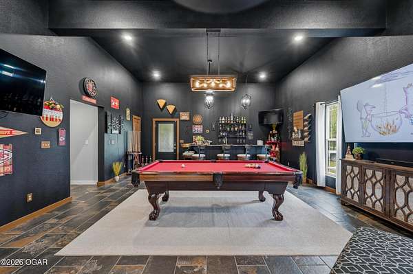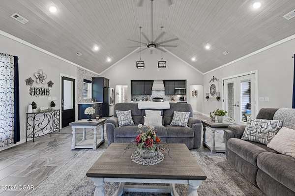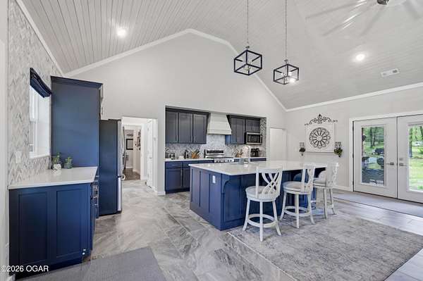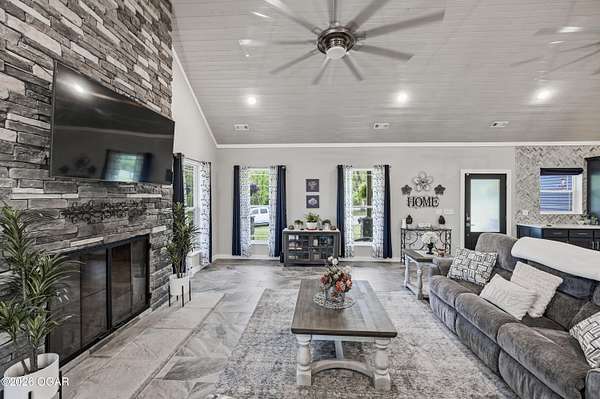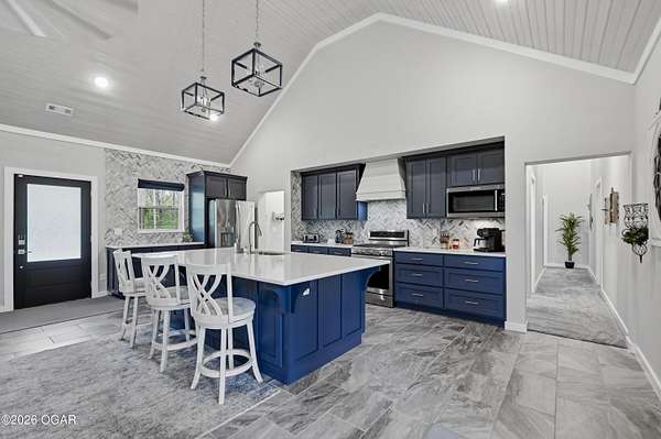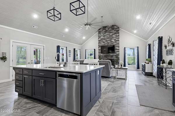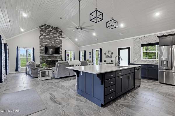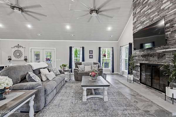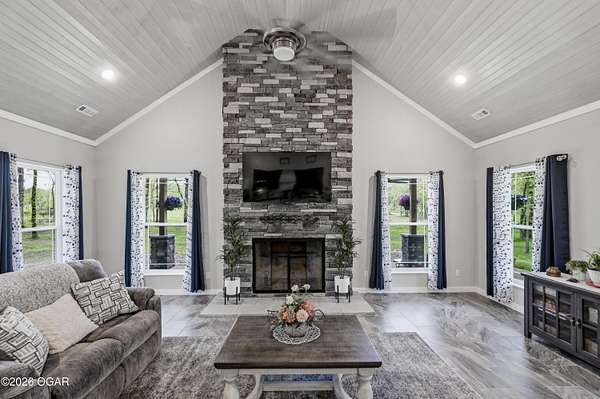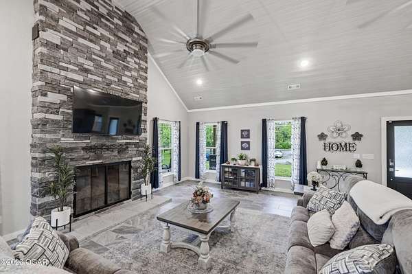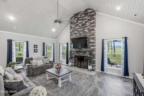 Step into this beautifully newly constructed home offering 3043 sqft of thoughtfully designed living space plus a partially finished room made for storing all the extras. With 4 spacious bedrooms and 2.5 bathrooms, this home blends modern comfort with timeless style, perfect for both everyday living and entertaining. This home was designed with entertaining in mind, all resting on 2.44 shaded acres! The open- concept floor plan welcomes you with abundant natural light, high ceilings, and seamless flow between living areas. The gourmet kitchen features sleek countertops, premium appliances, and ample custom cabinetry, and a large island ideal for gatherings. Adjacent, the inviting living room crates a warm and comfortable atmosphere for relaxing in front of the fireplace. The main floor primary suite serves as a private retreat, complete with a luxurious en-suite bathroom, and walk-in closet. Two additional bedrooms on the main floor offer flexibility for family, guests, or a home office. The fourth bedroom is located upstairs and is it's own private retreat! A dedicated half bath on the main level, along with a spacious laundry area and ample storage throughout the home. enhances functionality. We can't forget to mention the massive main level family room complete with a functioning bar perfect to serve all of your guests. The property also includes a beautifully finished exterior, with a wraparound porch ready for outdoor enjoyment and relaxation. Designed with quality craftmanship this home boasts 2x6 walls, spray foam insulation in the ceiling, zoned climate control and much much more. Homes like this do not come around everyday! Schedule your tour today!