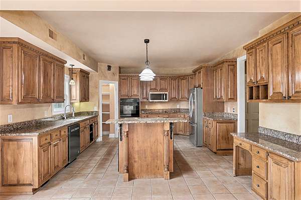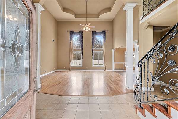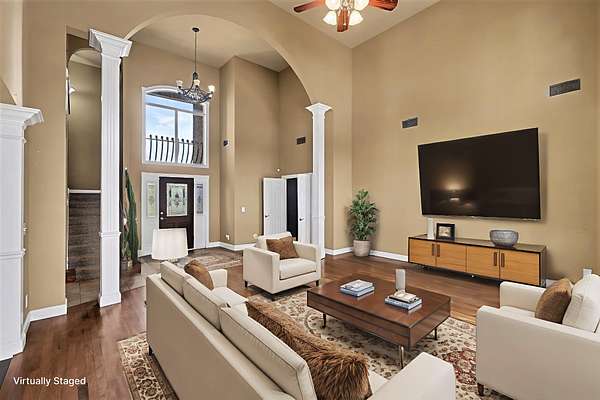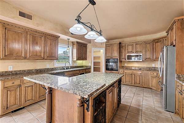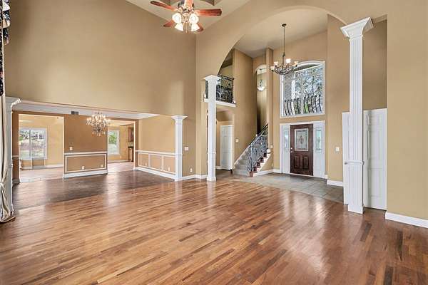Bring all your animals -- this equestrian-potential property can be your next farm! Everything about this estate expresses elegance, comfort, and functionality. Step inside and be greeted by soaring ceilings nearly 25 feet high in the main living room, creating an open and grand atmosphere. Hardwood and tile flooring, granite countertops, detailed millwork and columns, decorative ironwork, built-ins, and a luxurious tiled shower highlight the home's thoughtful craftsmanship.