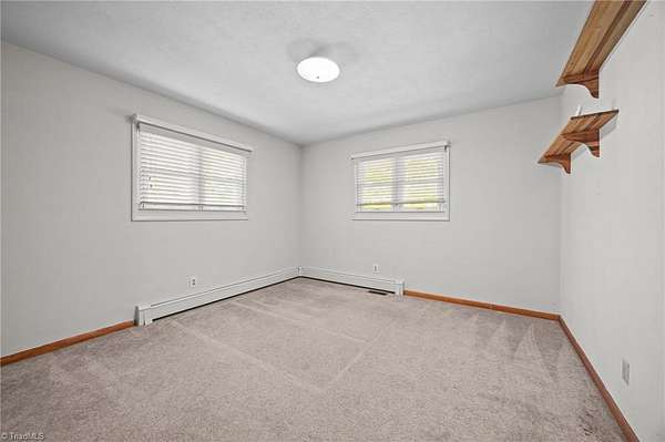 Est $1,790/moSpacious brick ranch home on 1.75 acres in the heart of Wallburg. Home has 3 bedrooms, 2 1/2 baths, unfinished basement with full garage door. There are permanent stairs to the attic, as well as another attic space with pulldown stairs. There is a covered screened in porch just off the side entry to the house. Nice open barn for storage as well as an enclosed section with concrete flooring for mowers or yard equipment.