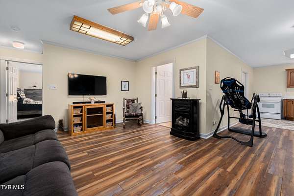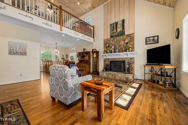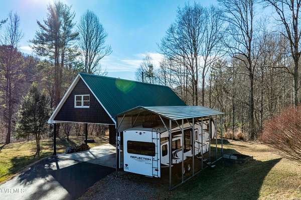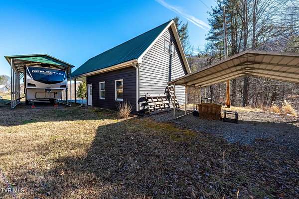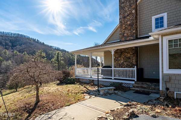 Beautiful country setting in Northeast Tennessee's Blue Ridge Mountains, located on the famous Copperhead Hollow Road-celebrated in Tennessee's recently adopted song, ''Copperhead Road.'' Enjoy long-range mountain scenes from this hill-top property with views, views, views. Immaculately maintained home featuring a new heat pump, new stainless appliances, low-maintenance siding, hardwood flooring, and ceramic tile. The great room offers a stone veneer fireplace with a pickled wood accent extending to the vaulted ceiling, along with a loft area overlooking the living space. Kitchen features granite countertops with an island. A heated sunroom entrance provides abundant natural light. Beautiful stained-glass features are found throughout the home. The finished basement includes a walk-out, second kitchen, and full bath-ideal for a guest apartment or in-law suite. Additional features include a radon mitigation system, paved driveway with one-bay drive under garage area, covered front porch and side porch, cleared acreage, and easy access. The exterior is professionally landscaped and enhanced with attractive stone wall features. Property includes 4.45+/- acres with the option to purchase additional acreage-see MLS #9967848. Improvements include a detached site-built structure with garage door, covered front area, and upper-story bonus room, plus an RV carport with water and 30 or 50 amp hook up and a second carport. Ridge-top backdrop with expansive long-range mountain scenes extending to the sister property and majestic surround -an exceptional opportunity in East Tennessee mountain living. Unrestricted and some personal property is available for purchase. Convenient to all Tri-Cities attractions and close proximity to Boone, NC, and the High-Country area. Buyer and buyer's agent to verify all information.