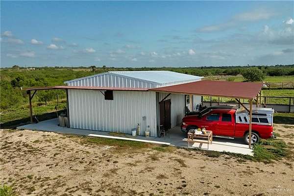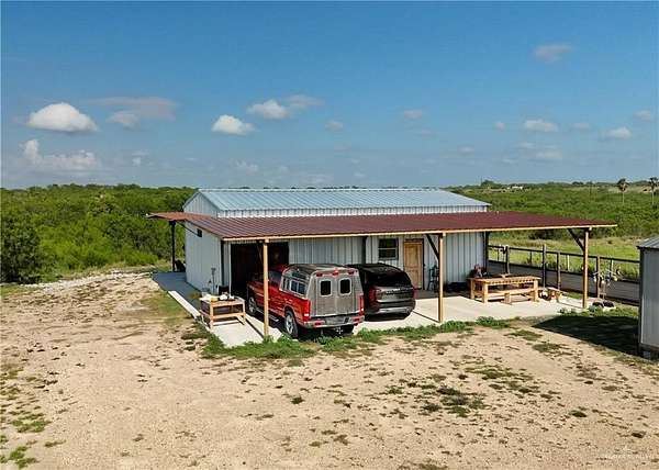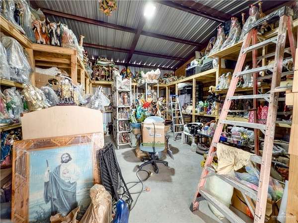 Welcome to 718 Leo Garcia Drive in Sullivan City! Sitting on 1 acre, this versatile property features a 1,000 sq. ft. metal building designed for both living and storage. The livable side includes a one-bedroom layout with a full kitchen, full bath, and a loft-style sleeping area, plus two mini-split units for year-round comfort. The adjoining storage area offers flexibility for tools, equipment, hobbies or possibly expanding the livable area. Enjoy covered patios at both the front and back, each with space for up to four parked vehicles. The entire structure is set on a concrete slab, complemented by a motorized gate and perimeter fencing. Located just a mile from US Highway 83 and minutes from shopping, schools, and local markets, this property is ideal for those seeking open space, a weekend retreat, or a starter ranch opportunity.