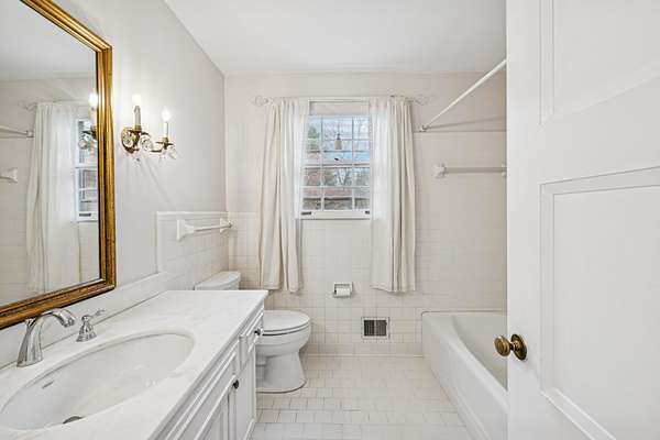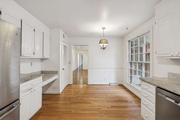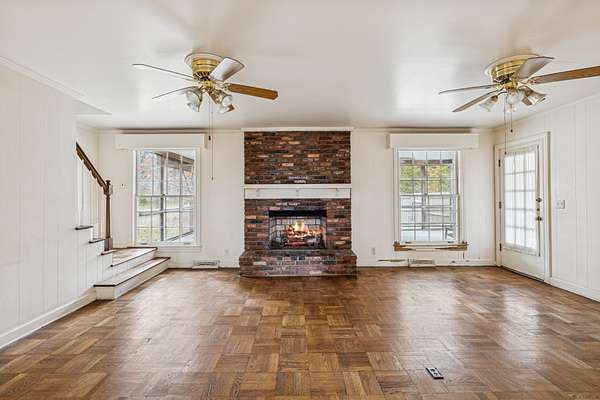 Est $9,259/moLocated on a beautiful 3 AC treed lot in Historic Franklin, this classic brick ranch offers many opportunities for the new owner. Stunning black and white marble floor in entry. Hardwood floors up and down. Brick fireplace in den-eating area in kitchen. 5 bedrooms. 2 car garage and a wonderful, screened porch overlooking the beautiful lot. New owner has option to renovate or tear down and build their own dream home. If you are looking for a great location, large lot in Historic Franklin look no further.