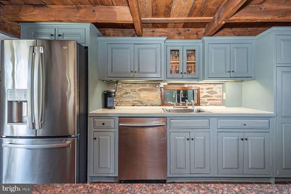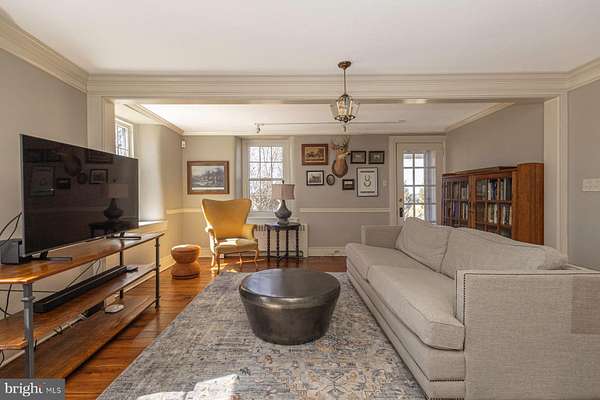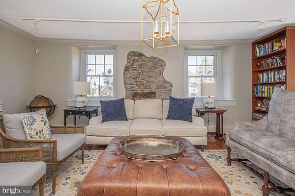 Timeless Bucks County Stone Farmhouse. Set within a beautiful open landscape, this simply charming and thoughtfully updated four-bedroom stone farmhouse captures the warmth, character, and timeless appeal that define authentic Bucks County living. Bathed in natural light, the home blends historic craftsmanship with modern comfort throughout. Original wide-plank wood floors, exposed fieldstone walls, and rich architectural details reflect the home's early American heritage while creating inviting spaces for both everyday living and relaxed entertaining. At the heart of the home, the country kitchen is wonderfully warm and inviting, featuring brick floors, exposed beams, and a propane stove that anchors the space with cozy character-an ideal setting for gathering, quiet mornings, and casual meals with family and friends. Generous living and dining rooms offer comfortable spaces for entertaining, while the upper level provides four well-proportioned bedrooms, including a serene primary suite with exposed stone walls that reflect the home's historic roots. Outside, the property unfolds across open grounds with expansive lawn and a picturesque countryside setting that enhances the home's sense of space and light. Beyond the main residence, the impressive barn offers beautifully finished space with Wi-Fi, bar, media, and entertainment areas-an exceptional setting for gatherings, a creative studio, or inspired work-from-home space, offering remarkable versatility and lifestyle possibilities. A home where historic charm and modern comfort come together in one of Bucks County's most timeless settings.