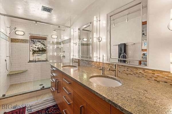 Tepee Ridge Homestead is a rare and serene mountain estate located in the heart of the highly coveted Bridger Canyon, offering the perfect balance of privacy, space, and proximity. Just 10 minutes from downtown Bozeman and Bridger Bowl Ski Area, this exceptional property spans approximately 97 deeded acres of rolling mountain meadows framed by sweeping, unobstructed views of the Bridger Range and Spanish Peaks. At the center of the property is a beautifully designed 5,386+/- square-foot Western contemporary residence, thoughtfully laid out for comfortable single-level living. The home features three well-appointed bedrooms and two-and-a-half bathrooms, with expansive living and dining areas that create an inviting atmosphere for both everyday living and entertaining. Large windows throughout capture the surrounding landscape and bring the outdoors in, while the home's flow and scale provide a sense of warmth and ease. An expansive covered back patio extends the living space outdoors and showcases stunning southern views-an ideal setting for hosting gatherings, enjoying peaceful mornings, or taking in Montana's unforgettable sunsets. Whether entertaining friends or savoring quiet moments, this space highlights the property's remarkable setting. Located adjacent to the main residence, a charming 1,441+/- square-foot guest house offers two bedrooms and two bathrooms, providing a private and comfortable retreat for family and guests. Additional improvements include a greenhouse, a large shop, and a toy barn, offering abundant space for hobbies, recreation, storage, and outdoor pursuits. Tepee Ridge Homestead is a truly special offering-an expansive, private mountain retreat that captures the beauty of Montana living while remaining conveniently close to world-class recreation, dining, and culture in Bozeman.