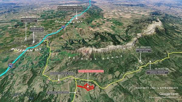 Bridger Canyon Drive North approximately 13 miles to Jackson Creek Drive East, Tepee Ridge Road North.