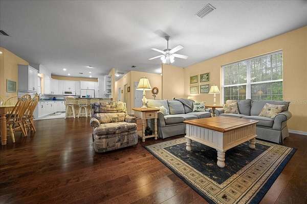 From the moment you step inside, you are welcomed by a bright and open floor plan where the living room, dining area, and kitchen flow seamlessly together, creating the perfect space for both everyday living and entertaining.