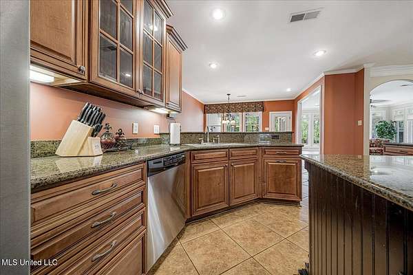 Luxury Living in the Heart of Lewisburg School District! Nestled on 1.94 acres, this remarkable home blends elegance, comfort, and functionality. Offering 5 bedrooms (or 4 bedrooms plus a 24.6x23.1 game room with wet bar, upper/lower cabinets, and large walk-in closet) and 3-1/2 baths including 3 bedrooms on the main level, the layout is perfect for both everyday living and entertaining. The gourmet kitchen is a chef's delight with granite countertops, under-cabinet lighting, tile flooring, built-in microwave, island and second sink, gas cooktop with vent hood and tile accent backsplash, double ovens, snack bar, oversized walk-in pantry, generous breakfast table area, and refrigerator to remain. A formal dining room with hardwood flooring, parlor/formal living room, and 22.3x16.5 great room with hardwood floors and double-sided fireplace opening to the 19.6x18.9 family room with tile flooring provide a warm yet sophisticated atmosphere. The 21.1x16.3 primary suite is a private retreat featuring salon bath with double walk-in closets, dual vanities (one with knee space), jetted tub, and walk-in shower. Split-bedroom floor plan includes two additional bedrooms down (12.10x11.10 BR#2 and 12.9x11.10 BR#3) with bath to service. Additional highlights include 3 HVAC systems, 4 walk-in attic areas, 2 hot water heaters, smooth ceilings, laundry room with sink and cabinetry plus built-in ironing board, free-standing icemaker (''as is''), and 2-inch blinds. Outdoor living is equally impressive with covered patio that is pre-plumbed for natural gas grill, extended patio, 12x8 storage building, extra-large double garage with two overhead doors, gutters, architectural shingle roof is only five years old, impressive front porch, and partially fenced yard-all surrounded by mature trees, landscape lighting, and welcoming circle drive. County taxes only and award-winning Lewisburg Schools-schedule your private showing today! Some photos virtually staged.