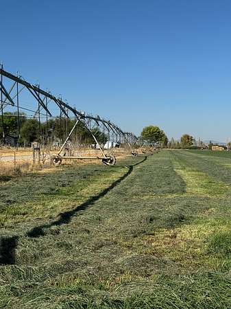 Just a few miles down the road lies the second ranch: 100 acres total, with about 85 acres currently in production. It's fully fenced and irrigated by a powerful ag well (drilled in 2018 with a 75 HP pump producing up to 1,300 GPM), two remote-controlled pivots, and a wheel line. This ranch typically produces 4 cuttings per season, averaging around 6 tons per acre.