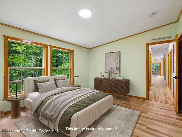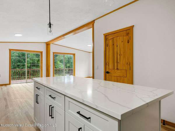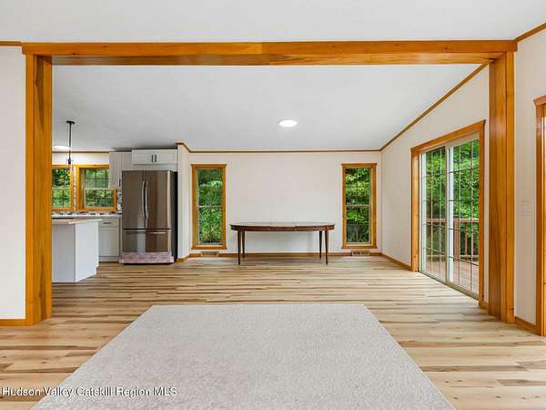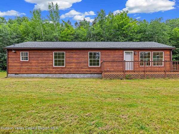 Rustic Charm Meets Modern Elegance in This Fully Renovated Catskills Retreat! Welcome to this beautifully updated 3-bedroom, 2-bathroom contemporary home, where rustic warmth and modern sophistication blend seamlessly. Set on nearly two private acres, this inviting single-story home offers a spacious open-concept floor plan with gleaming wood floors and an abundance of natural light throughout. From the brand-new roof, hot water heater, and furnace to the stunning kitchen and bathrooms, no detail has been overlooked. The heart of the home is the chef-inspired kitchen featuring stainless steel appliances, quartz countertops, soft-close shaker cabinets, a chic gray-and-white tile backsplash, and a large center island perfect for casual meals and conversation. Adjacent, the generous dining area comfortably fits a table for 6-8, making it ideal for entertaining. Double sliding glass doors span an entire wall, providing easy access to the expansive wraparound deck-perfect for barbecues, alfresco dining, or soaking up the summer sun. The home offers three well-appointed bedrooms, including a serene primary suite complete with a double vanity, gold-framed mirrors, modern lighting, and an oversized tiled walk-in shower. Both bathrooms echo the same luxurious finishes for a cohesive and stylish design. A convenient laundry/mudroom with outdoor access and washer/dryer hookups adds extra functionality. Perfectly located just 20 minutes from the charming towns of Catskill and Durham, you'll also be close to skiing at Windham Mountain Club and Hunter Resort, summer fun at Zoom Flume Water Park (just 10 miles away), and a variety of outdoor activities like hiking, biking, fishing, swimming, and golfing. Homes in such immaculate condition at this price point are rare-don't miss your chance to make this peaceful Catskills escape your own. Call today to schedule a private showing! A 3D Walkthrough Tour is available in the digital Lookbook or by request from the listing agent.