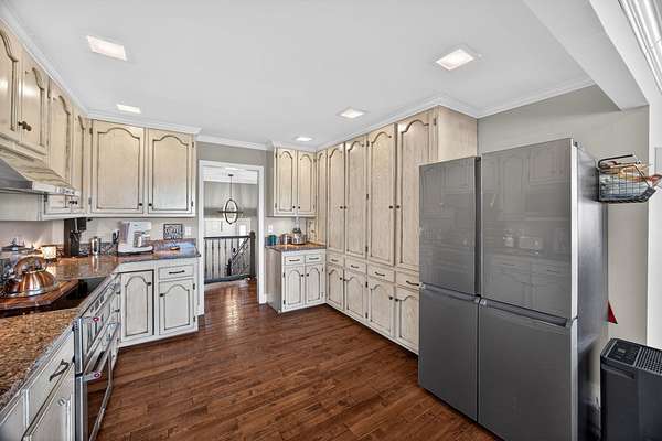 - Built-In Electric Oven, Cooktop, Dishwasher, Double Oven, Electric Range, Microwave, Refrigerator, Stainless Steel Appliance(s)